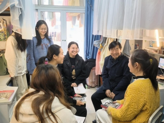 在学生宿舍,黄建元总会计师与同学们面对面交流,详细了解同学们的学习和生活情况以及对学校、学院发展与建设的意见和建议,耐心解答了同学们提出的问题。黄建元总会计师亲切询问了疫情防控期间同学们在学习生活等方面的需求和困难,对同学们能够积极配合学校疫情防控工作表示肯定和感谢。他还仔细查看了宿舍用电与冬季空调使用情况,提醒同学们要注意用电安全,做好个人防护,并嘱咐同学们要尽快调整好期末学习状态,以良好的精神面貌投入到复习考试之中。
