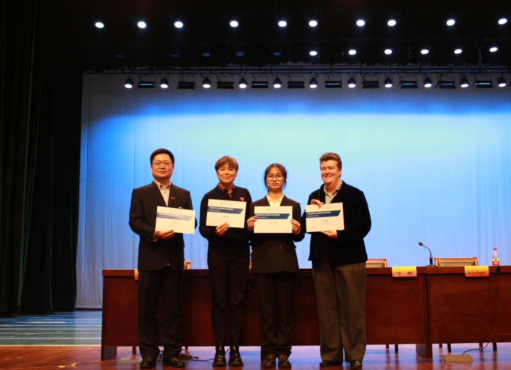 丁强副院长作总结发言。他对获奖的同学表示祝贺,并对新方团队管理人员的来访表示热烈欢迎。他表示,在新方教学团队的辛勤努力下,同学们克服疫情带来的生活和学习方面的困难和挑战,取得了优异成绩,起到了模范带头作用。梅西学院将会继续积极引进国外优质资源,深入推进国际化战略,提升国际化水平,培养全面发展的高素质人才,共创梅西学院美好未来。