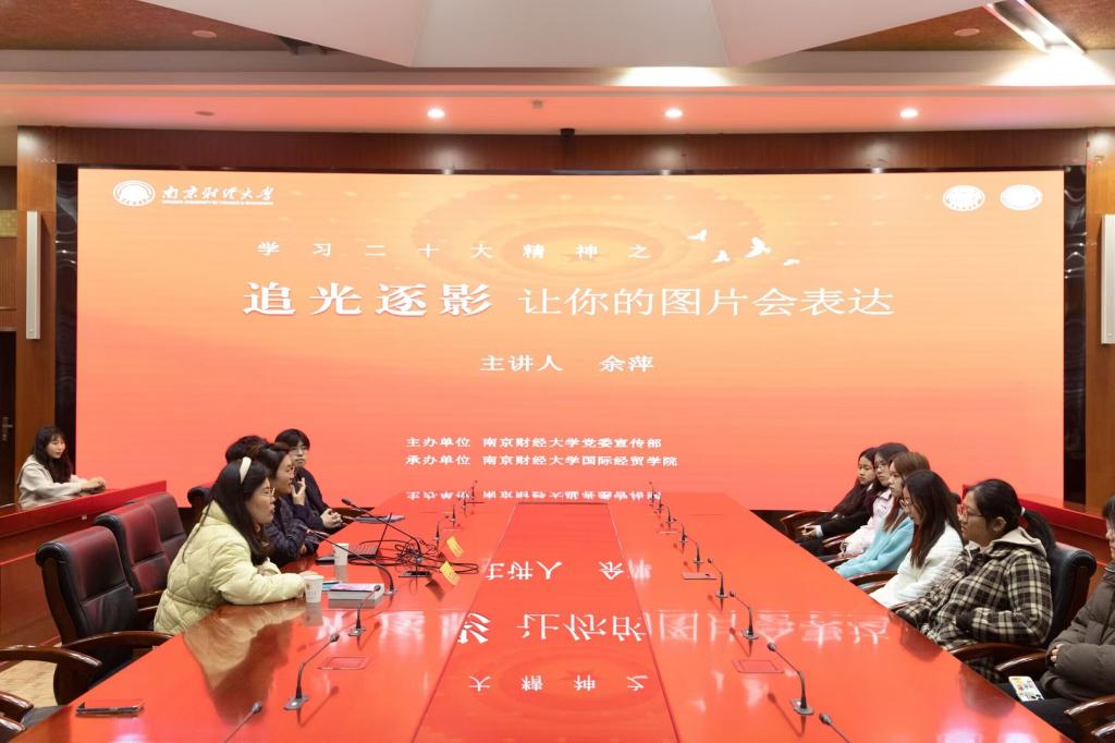 为提升我校宣传队伍新闻摄影水平,3月24日下午,新华日报社全媒体视觉中心主任记者、江苏省摄影家协会理事余萍应邀在我校仙林校区举办题为“追光逐影——让你的图片会表达”的培训讲座。本次讲座由党委宣传部主办、国际经贸学院承办。我校部分单位兼职宣传员,校摄影协会、新媒体中心、校园电视台社团成员,国际经贸学院部分同学参加培训。讲座由党委宣传部副部长龚莉红主持。