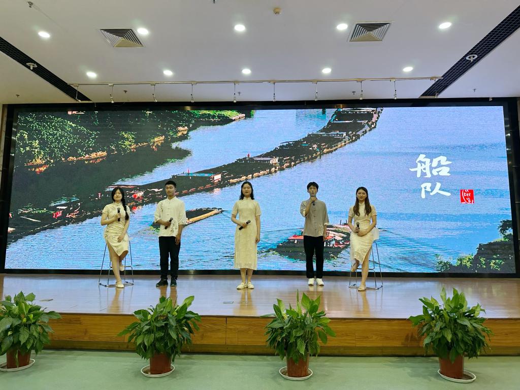 5月29日晚,我校“书香新时代,‘典’亮新征程”中华经典诵读大赛决赛在仙林校区图书馆一楼报告厅举行,来自全校各学院的12支诵读队伍精彩演绎了决赛作品。教务处处长朱军,马克思主义学院党总支书记陈翔,新闻学院党总支书记陈丹,学生处副处长袁怡琨,教务处副处长陈志琴、赵昂,校团委副书记陈涛等担任评委。新闻学院党总支副书记李博伟、副院长刘霞云、中文系主任王华以及大赛指导教师参加活动。