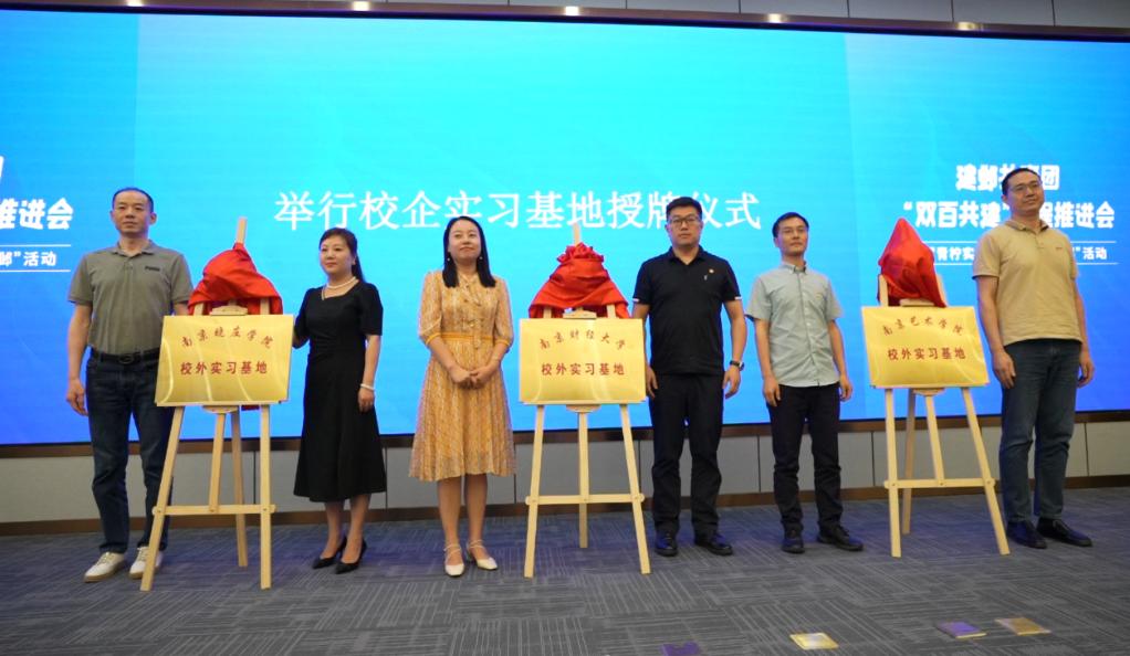 活动现场,我校及其他高校与建邺团区委进行共青团系统“双百共建”工程项目合作协议签约。随后,我校与苏宁银行股份有限公司等校企合作组举行了校外实习基地授牌仪式。
