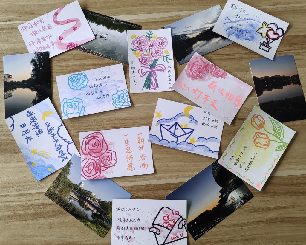 发挥专业特色,表达祝福。外国语学院开展了“教师节,我们这样表白”活动。同学们精心准备贺卡,用最真挚的字句,在课间为教师们送上节日的祝福;结合外院特色,录制教师节英文朗诵,用声音送去感恩。应用数学学院开展“感恩教师节,致敬筑梦人”教师节送祝福活动,活动分为书写祝福语、鲜花赠礼和祝福传递三个环节,同学们运用所学的知识,以数学语言表达对老师的感谢与祝福。信息工程学院开展“我与老师的最美瞬间”摄影作品征集活动,面向学院全体学生征集青年学生与老师在一起的感人画面,并通过鲜花、明信片,表达对老师的祝福。经济学院为老师们精心准备了寓意耕耘和成长的种子盲盒和精心定制的盆栽绿植,表达节日祝福。国际经贸学院面向全院同学征集教师节祝福语,有饱含深情的文字、手绘书本与花束,以此表达对老师的祝愿与感谢。公共管理学院开展了“感恩师情,匠心育人”活动,学生们纷纷在贺卡上写下对老师的感激和祝福。金融学院开展了“‘篮’火相传,铭记于心”篮球友谊赛,教职工篮球队老师和学院2023级新生参加比赛,最终,教职工篮球队老师获得胜利。
