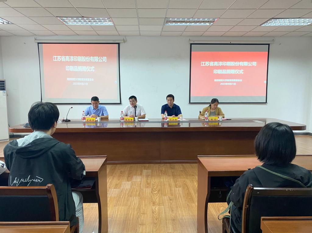 活动开始,陆明峰处长对高淳印刷股份有限公司一行的到来表示热烈欢迎,并对他们支持教育、支持学校的善举表示衷心感谢。随后,孔大伟校友与裴银伟副处长共同签署捐赠协议。孔大伟代表江苏省高淳印刷股份有限公司向学校捐赠《南财校友》800本。张杰书记向孔大伟校友颁发了捐赠证书。