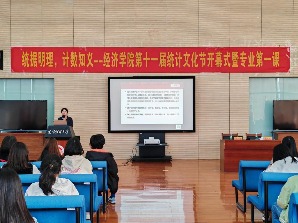 为让同学们对统计学有初步了解,对未来职业规划产生清晰认知,帮助同学们理清思路,加深对所学专业的了解,10月8日下午,经济学院于仙林校区图书馆四楼世界之窗举办了“统据明理,计数知义”第十一届统计文化节开幕式暨专业第一课。经济学院党委副书记贾亦璞、经济学院统计系系主任程恭品、学院大一新生参加活动。