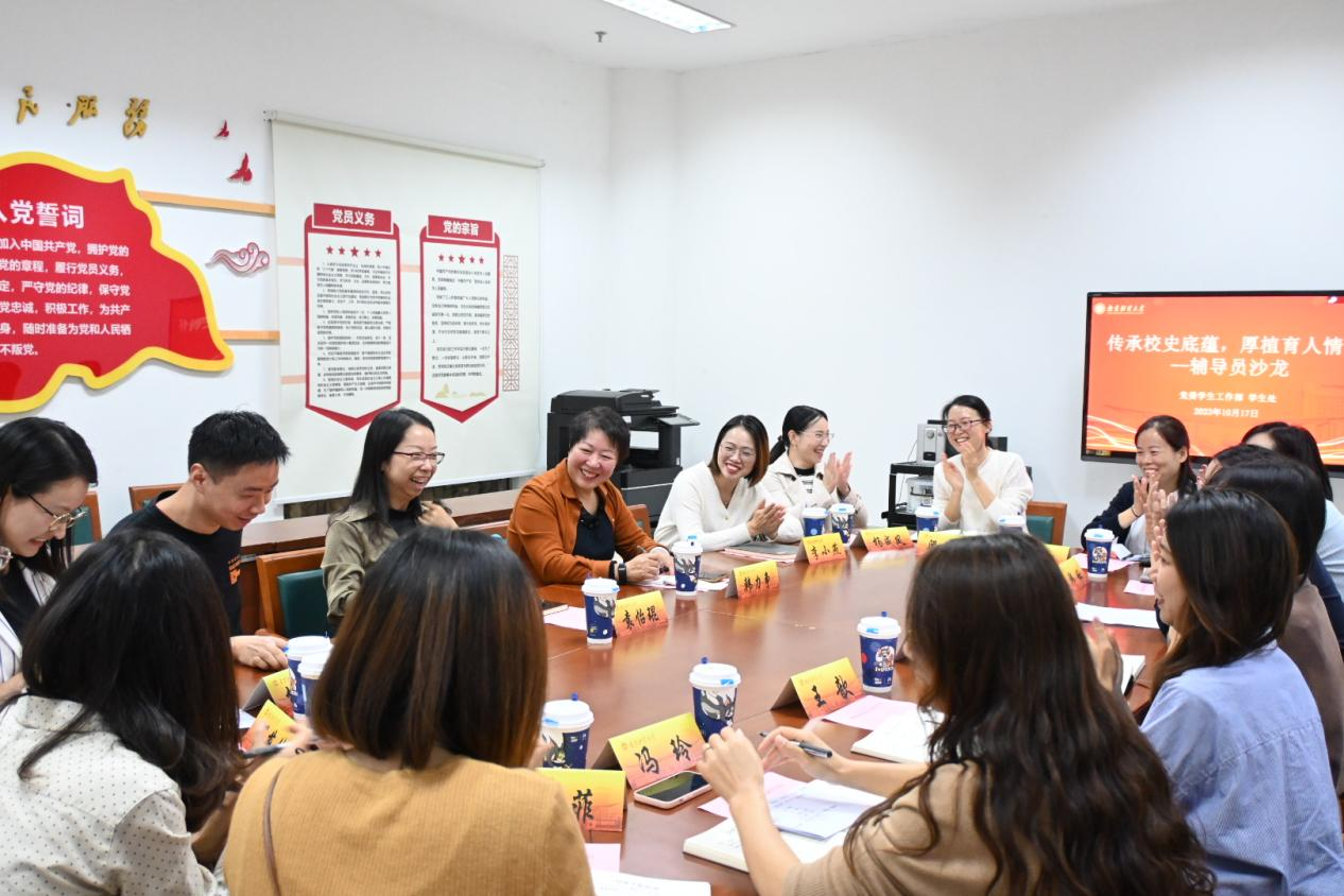 党委学生工作部组织优秀辅导员赴校史馆和图书馆一楼会议室开展“榜样与传承”辅导员主题沙龙活动。活动以“传承校史底蕴,厚植育人情怀”为主线,党委学生工作部部长韩力争、各学院优秀辅导员代表、学生处相关人员参加活动。辅导员主题沙龙由党委学生工作部副部长袁怡琨主持。大家走进校史馆,穿梭于南财发展的历史长廊,感受每一份耕耘与收获。在历史与现实的交汇中,重温历届师生共同追求卓越、永不停歇的奋斗篇章。主题沙龙活动中,优秀辅导员代表们畅谈参观体会和育人心得,表达对学校的深情祝福。韩力争部长表示,优秀辅导员应当从宏观、微观两个层面发挥榜样示范作用,要具备全局视野和宏观思维,主动学习理解加强大学生思政教育的相关政策和重要意义,掌握教育规律和人才培养标准,关注学生的个性化需求和发展,为学生提供针对性的指导和支持,更好地指导学生的全面发展和成长。本学期,党委学生工作部将通过组织系列辅导员主题沙龙活动,搭建内部学习分享平台、推动分层分类培养、打造一批品牌化特色化辅导员团队和辅导员工作室,扎实推进辅导员职业化、专业化、专家化发展,为进一步深入实施“时代新人铸魂工程”,提高辅导员队伍素质能力,强化队伍建设奠定坚实基础。