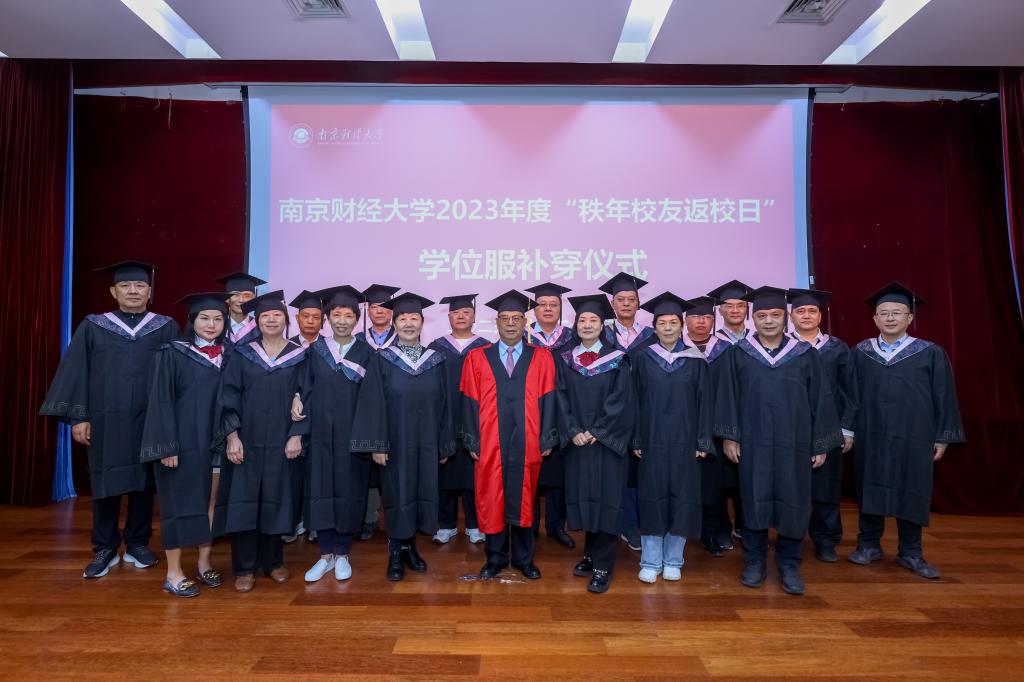 师生联谊会上,学校特别安排了83级校友学位服补穿仪式,弥补当年没有穿学位服的遗憾。王开田教授为校友们拨穗并合影留念。中午,校友们在福建路校区学生食堂就餐,回味母校味道。