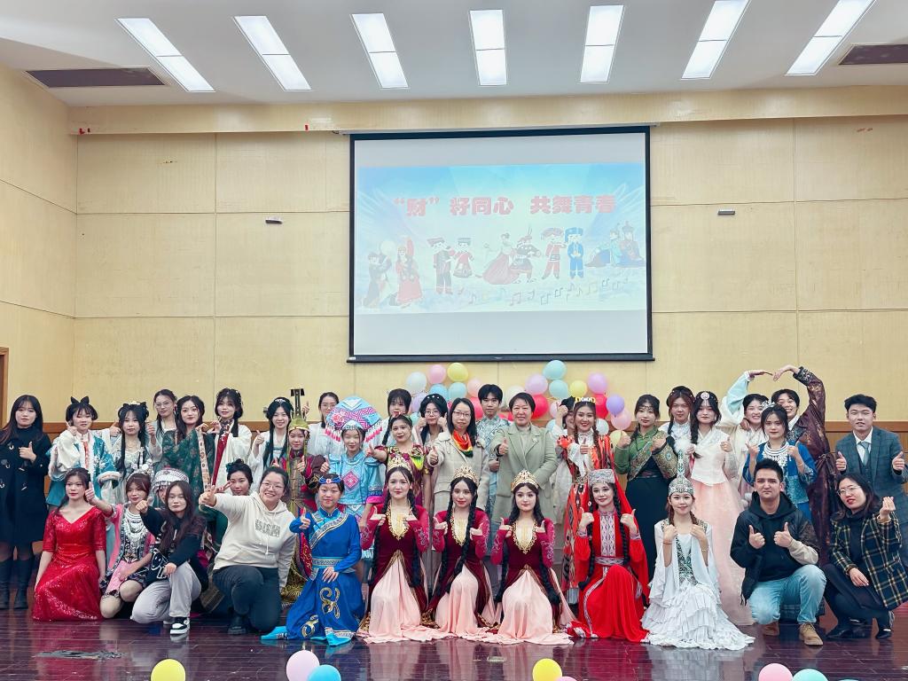 11月17日晚,校“同心圆”少数民族辅导员工作室与学生社团民族文化社在仙林校区德济楼212报告厅共同举办“‘财’籽同心,共舞青春”民族服饰展示活动。党委学生工作部部长、学生处处长韩力争,党委学生工作部副部长、学生处副处长袁怡琨,学生处思政科相关老师和少数民族辅导员与我校各族学生、留学生等参加活动。