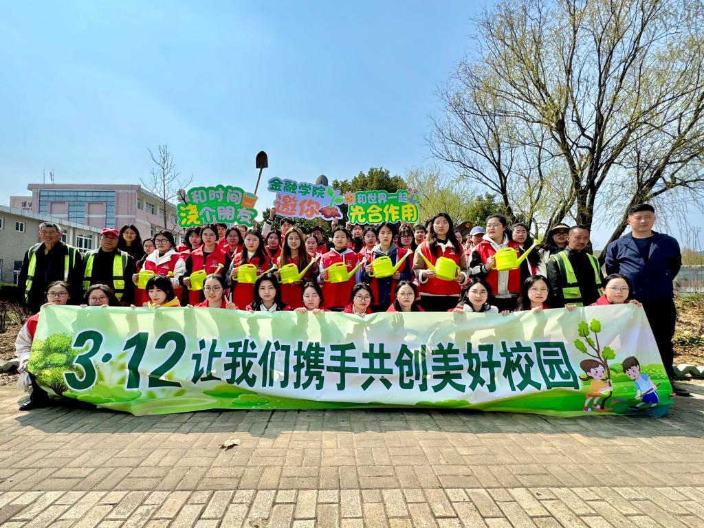 金融学院师生在融勤花园开展以“不负好时光,添绿正当时”为主题的植树节活动。植树现场一派热烈景象,参加劳动的同学们手持铁锹锄头,挖坑、栽苗、扶正、培土、浇水,各道工序有条不紊……午后的骄阳映衬着师生热火朝天的身影,成为校园里一道亮丽的风景。