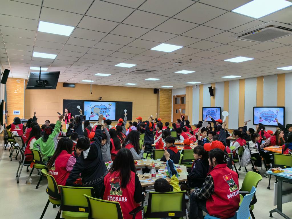 “种豆子”课堂——以青年之力举少年之志。南京市东郊小镇小学22级八中队的小朋友们走进校园,参加“青”廉能量站开展的“金融筑梦,童行铸廉”主题游学活动。游学活动分为国防教育主题宣讲、清廉金融课堂、“金小鳄”集市和食堂体验环节。活动中,“军事理论与国家安全教育”课程教师为同学们讲授国家安全教育课。学院本科生、研究生志愿者们积极联动,大手牵小手,青年引领少年,在少年先锋队中种下保家卫国之志。