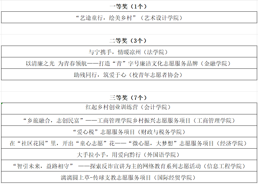 附录:南京财经大学第二届“蓝经灵”志愿服务项目大赛获奖名单