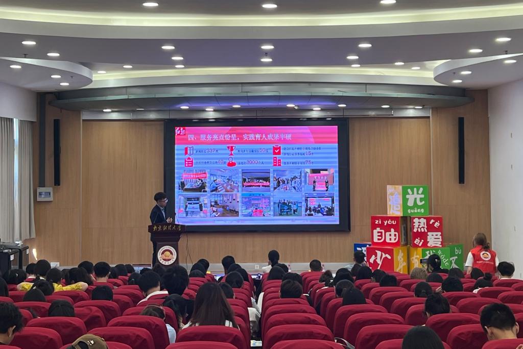 5月24日下午,我校在仙林校区大学生活动中心三楼报告厅举办第二届“蓝经灵”志愿服务项目大赛决赛。南京师范大学团委副书记徐逸霏,南京邮电大学团委副书记李伟,南京警察学院团委副书记王智,法学院社会工作系副教授、硕士生导师高丽茹,校团委副书记陈涛担任评委。各学院团委负责老师、学生代表,校团委、校青年志愿者协会全体人员参加活动。