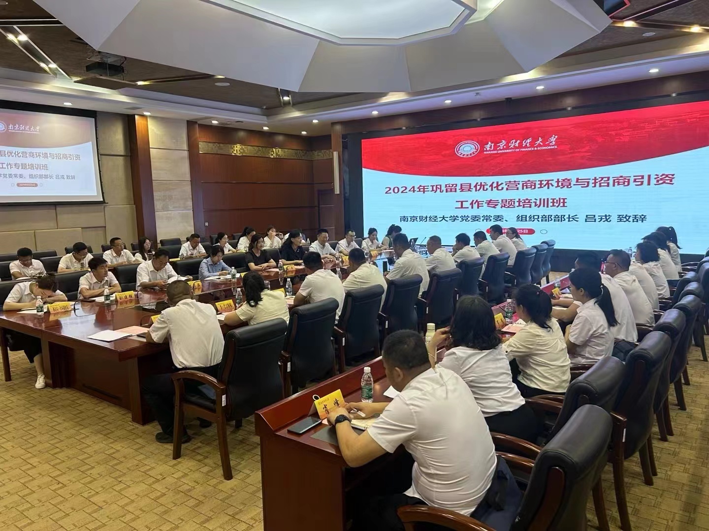 6月25日至30日,由外国语学院承办的巩留县优化营商环境与招商引资工作专题培训班在我校仙林校区工科楼二楼会议室举行。来自新疆伊犁的近40名巩留县各乡镇项目分管领导、经济口部门项目业务工作人员参加培训。伊犁州生态环境局巩留分局党组书记、副局长马俊,我校党委常委、组织部部长吕戎,外国语学院副院长(主持工作)丁强、党委副书记孙大松出席开班仪式。