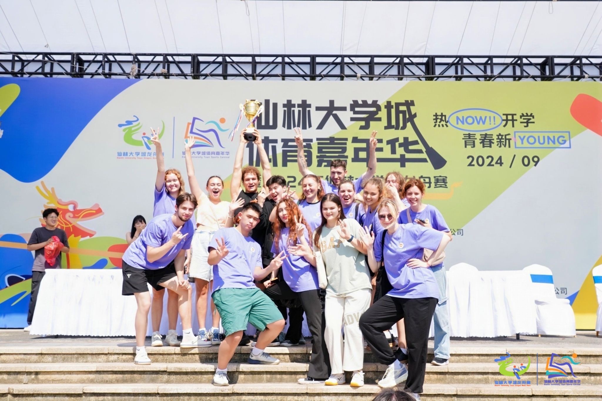 9月28日,2024年仙林大学城龙舟赛暨仙林大学城体育嘉年华在青奥水上运动中心羊山湖基地举行。来自南京各大高校的中外学生齐聚一堂,共同参与这场传统与现代相结合的体育盛事。我校外国留学生凭借出色的表现,获得三等奖。