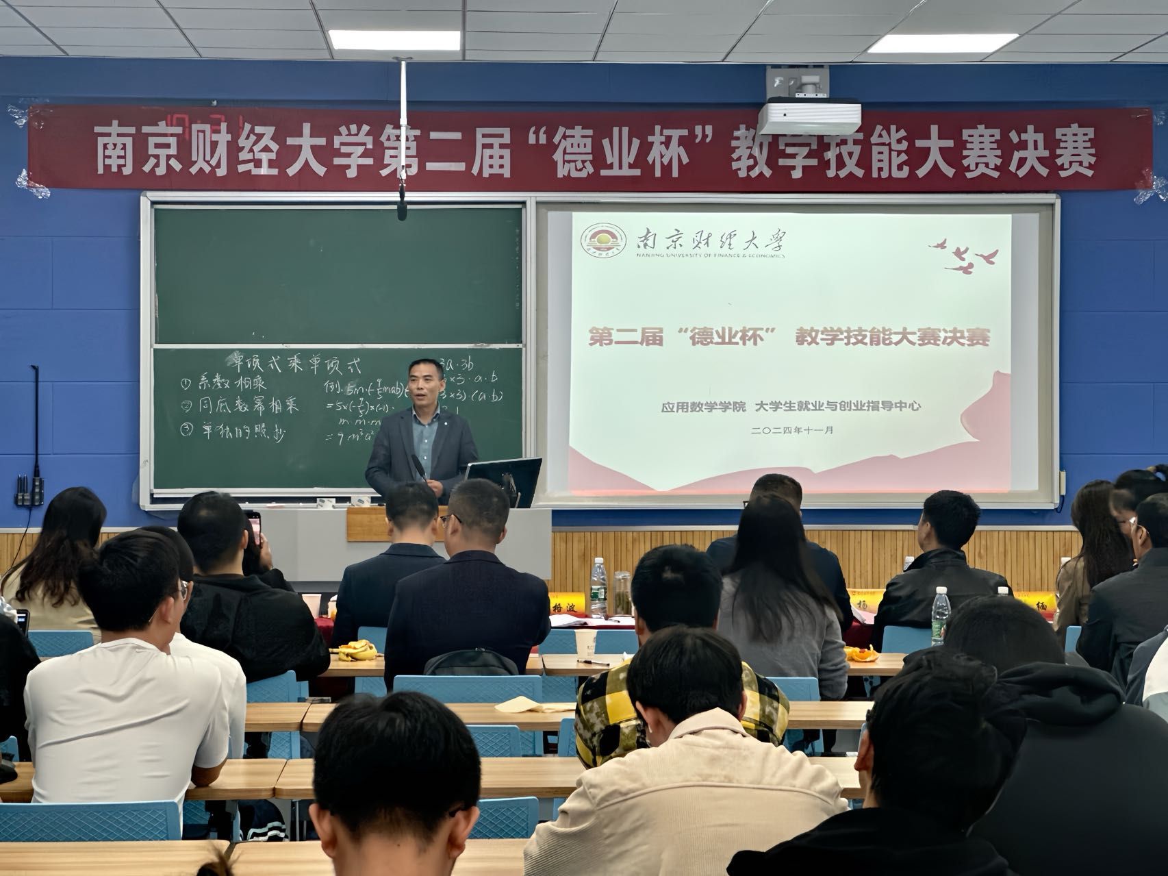 为提升学生的教育教学技能,增强其在教育领域的就业竞争力,11月2日下午,我校第二届“德业杯”教学技能大赛决赛在仙林校区博文楼105多功能教室举办。江宁高级中学校长张格波、南师附中秦淮科技高中副校长龚亮亮、江宁高级中学福宁路校区副校长黄宣忠、南京育英外国语学校副校长杨永、南师附中仙林学校初中部副校长李海英、南京市三牌楼小学副校长张缅、南京外国语学校明远小学副校长高小娣、我校学生处副处长李慕原担任评委。我校教务处处长朱红根,应用数学学院党委副书记孙晓飞、副院长孙成峰、副院长吴波参加活动,部分研究生和本科生观摩比赛。活动由应用数学学院院长方国昌教授主持。
