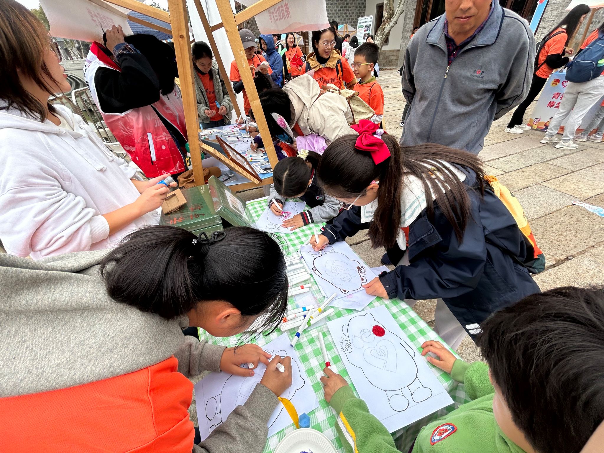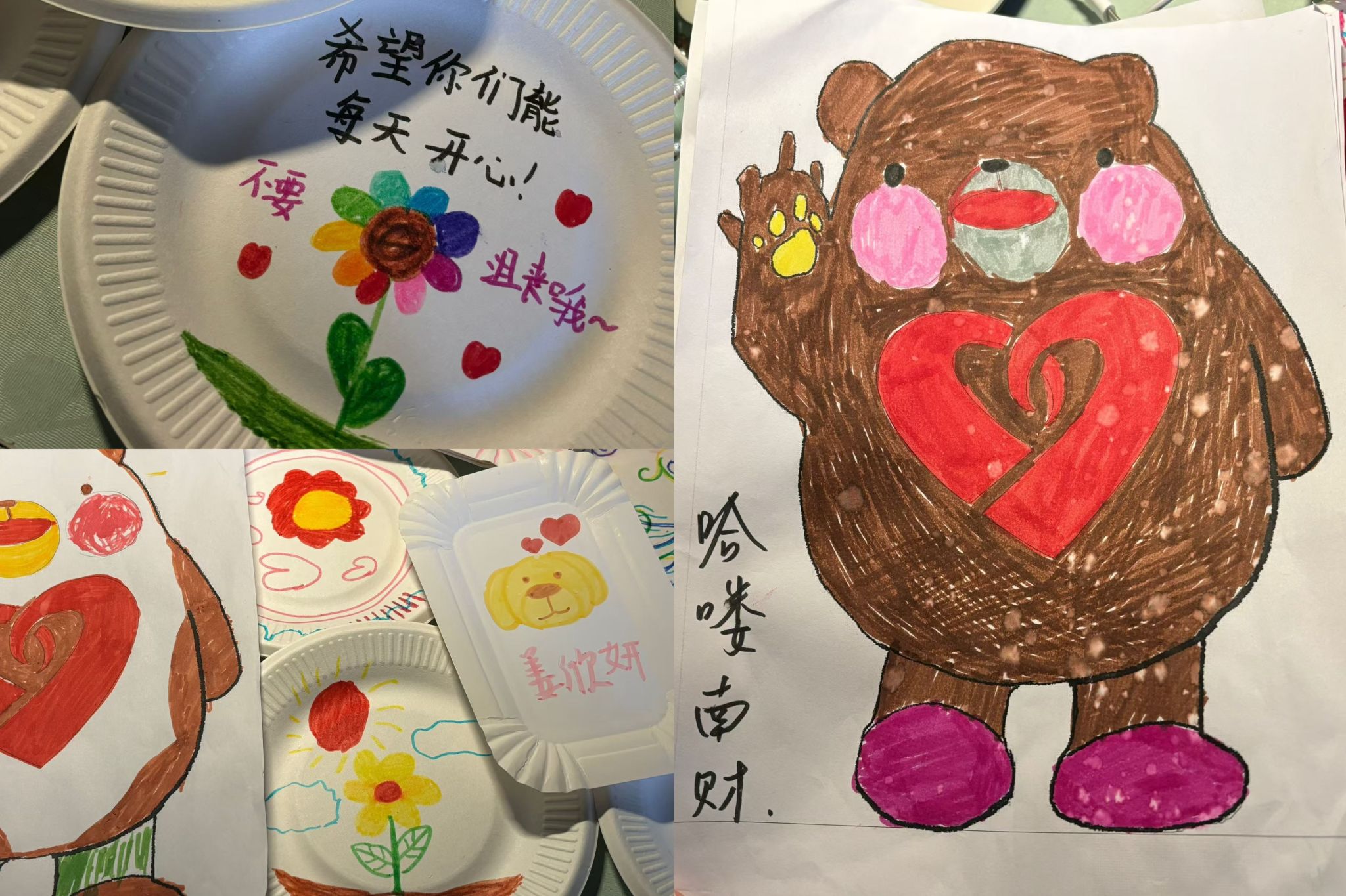 在志愿服务项目展示活动中,“爱心小站”社团向参与活动的青少年们提供了社团象征物“小小熊”的线稿,邀请他们发挥想象力,填充关于爱的颜色。这不仅是一次艺术的创作,更向他们宣传了爱心分站“一站对一童”的公益帮扶模式,让爱通过“小小熊”这一象征物联结和传递。活动还借助纸盘画的形式,收集了大量小朋友的创意绘画,这些承载着关心与温暖的作品将作为特别礼物,由爱心小站寄送给受资助的小朋友。