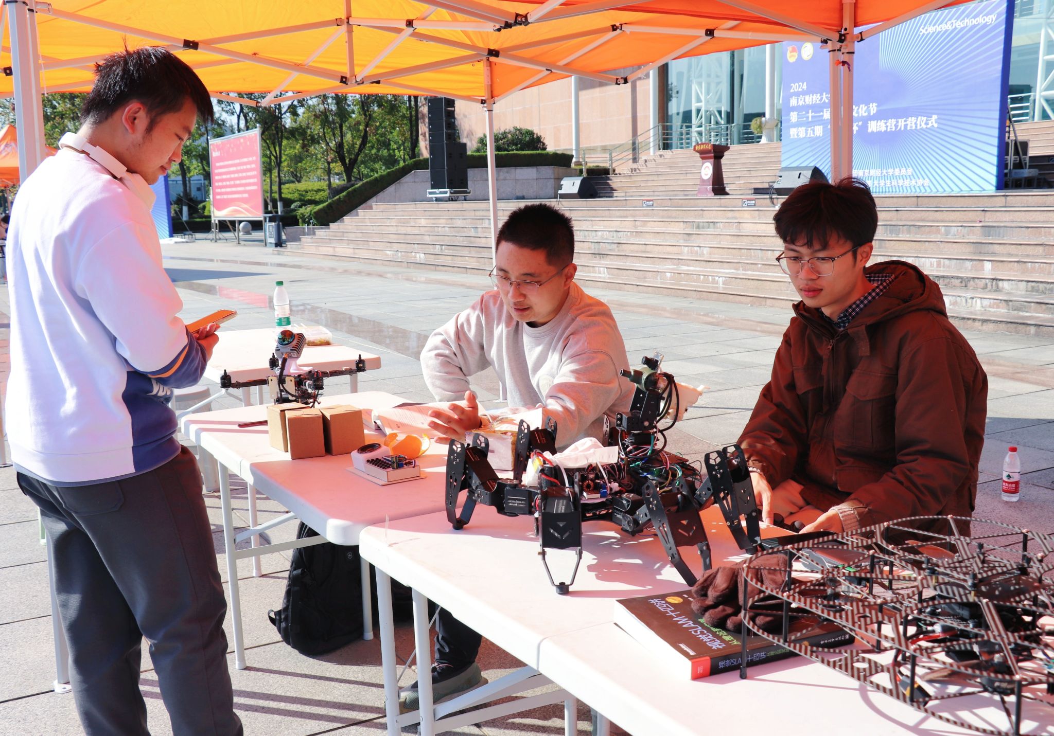 11月23日上午,由校团委主办,校团委科创实践部、大学生科学技术协会承办的第二十一届大学生科技文化节开幕式暨第五期“挑战杯”训练营开营仪式在仙林校区大学生活动中心南广场举行。校团委副书记陈涛、校团委副书记(挂职)胡静、兄弟高校学生代表、科技文化节项目展示团队及第四期和第五期“挑战杯”训练营学员参加开幕式。