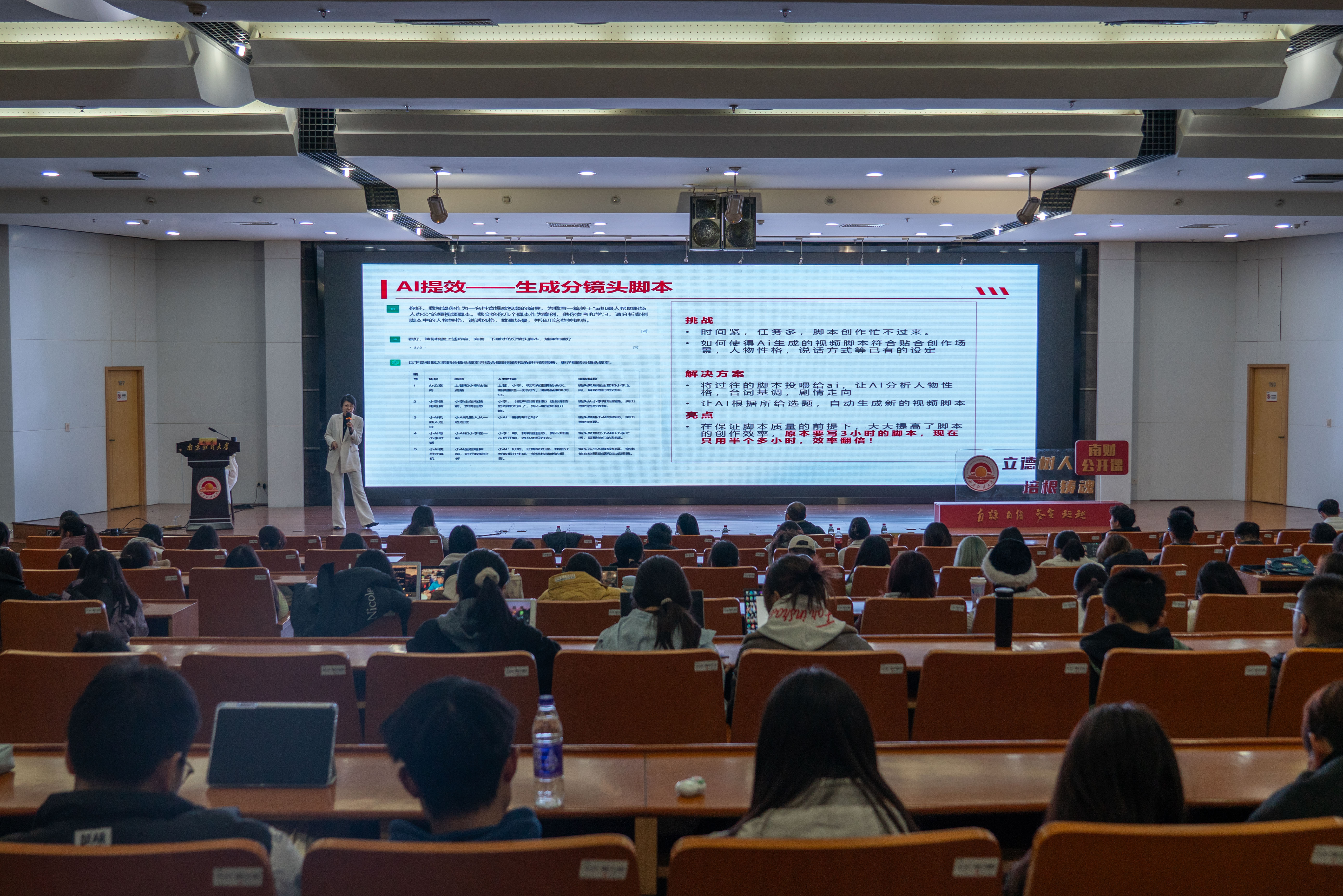 讲座内容充分回应观众当下需求,语言精彩幽默,启发大家深度思考。互动环节,同学们积极参与,踊跃提出自己的疑问与思考。陈炳烨同学感慨道:“这场干货满满的讲座让我受益匪浅,我不仅学会了通过‘角色+需求+要求’的公式进行精准化提问,促使AI提供优质答案,更明白了使用AI不意味着躺平和依赖,而是对自身的专业能力提出了更高要求。未来我将主动学习,勇敢拥抱智能时代。”
