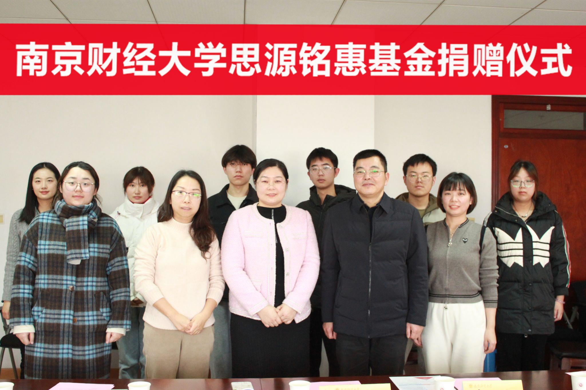 12月26日上午,思源铭惠基金捐赠仪式在我校仙林校区行政楼605室举行,会计学院会计026班校友、友邦人寿南京分公司业务处经理张慧向学校捐赠1万元设立思源铭惠基金,用于支持思源社团的发展,助力学生成长成才。我校对外联络处处长陆明峰,学生处学生资助管理科老师以及思源社团学生代表参加捐赠仪式。仪式由党委学生工作部副部长、学生处副处长袁怡琨主持。仪式上,陆明峰处长对张慧校友心系母校、慷慨捐赠的善举致以衷心感谢。他表示,学校的发展和成就有赖于校友们的大力支持,此次捐赠将助力思源社团更好发展。随后,陆明峰处长向张慧校友颁发捐赠证书。张慧校友回顾了自己作为南财仙林校区的第二届本科生,在学校学习、生活、成长的点滴,她感恩母校的精心培育,并结合自身多年的学习、工作经历和人生感悟,与学弟学妹们交流分享,鼓励同学们加强沟通交流,关注国家政策动态,积极参与社会实践,在实践中提高自身综合素质,突破个人发展瓶颈,实现自我价值的提升与个人成长的跨越。