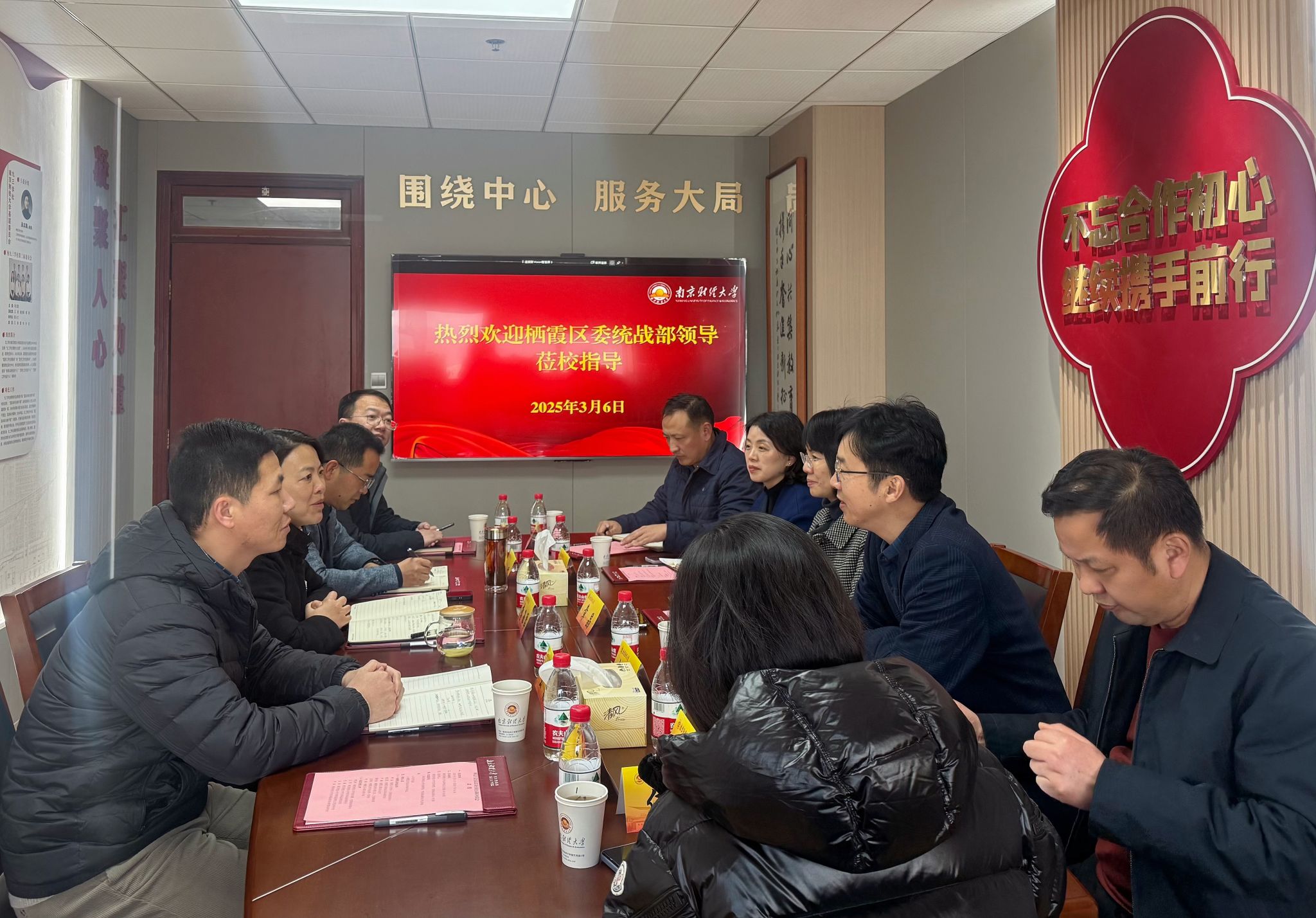 3月6日下午,栖霞区委常委、统战部部长章晶,区委统战部常务副部长赵玉泉,区委台办主任叶琳,区侨办副主任陈学哲等一行来访我校,围绕统战工作校地共建开展调研座谈。调研座谈会在仙林校区行政楼1305会议室举行。党委统战部全体工作人员参加会议。座谈会由党委常委、统战部部长李玉琴主持。