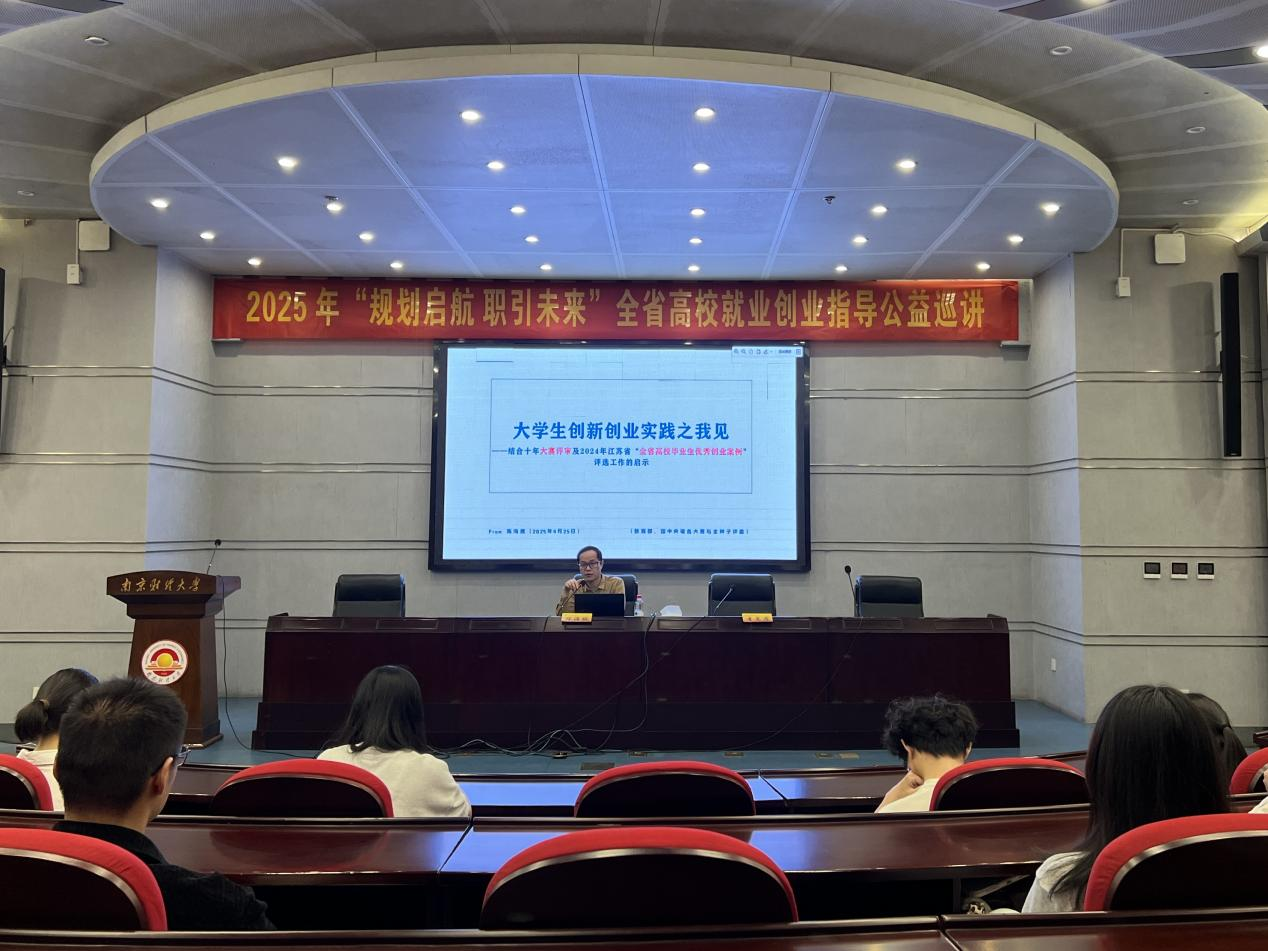 本次讲座为我校承办的江苏省高校招生就业指导服务中心“规划启航 职引未来”全省高校就业创业指导公益巡讲之一。本次巡讲是全省推动高质量就业的重要举措,后续将围绕科技服务、装备制造等七大行业领域开展专题指导,为毕业生融入国家发展战略、服务地方经济建设提供坚实支撑。