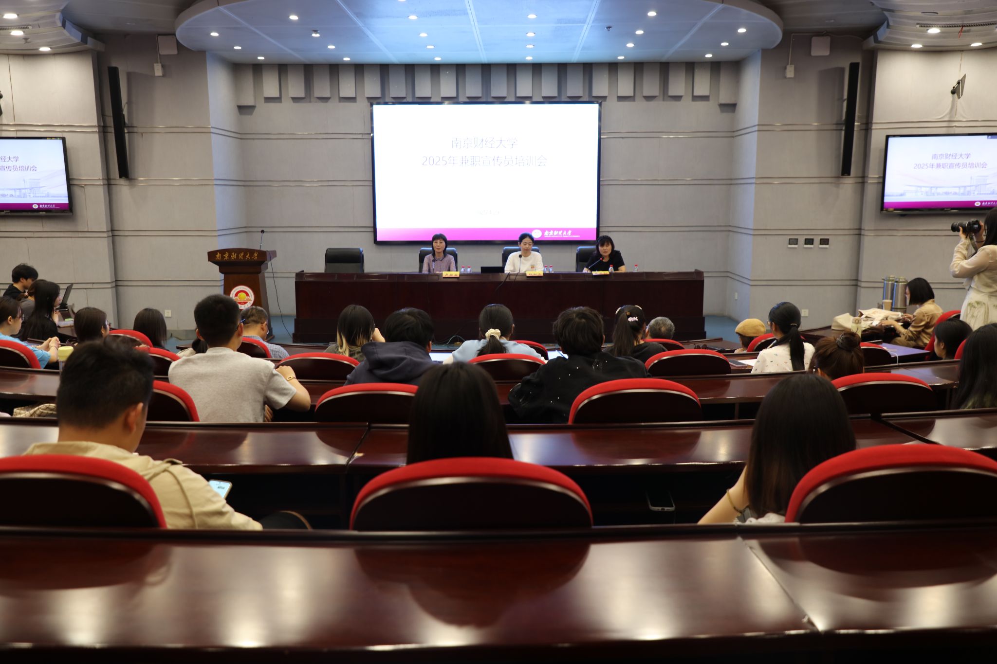 4月29日下午,我校在仙林校区行政楼二楼报告厅召开兼职宣传员培训会。《扬子晚报》记者杨甜子、经济学院教授卢映西作主题讲座。各单位兼职宣传员和学生代表、教职工诗词协会等会员代表、党委宣传部相关工作人员和学生社团骨干参加培训。培训会由党委宣传部副部长龚莉红主持。