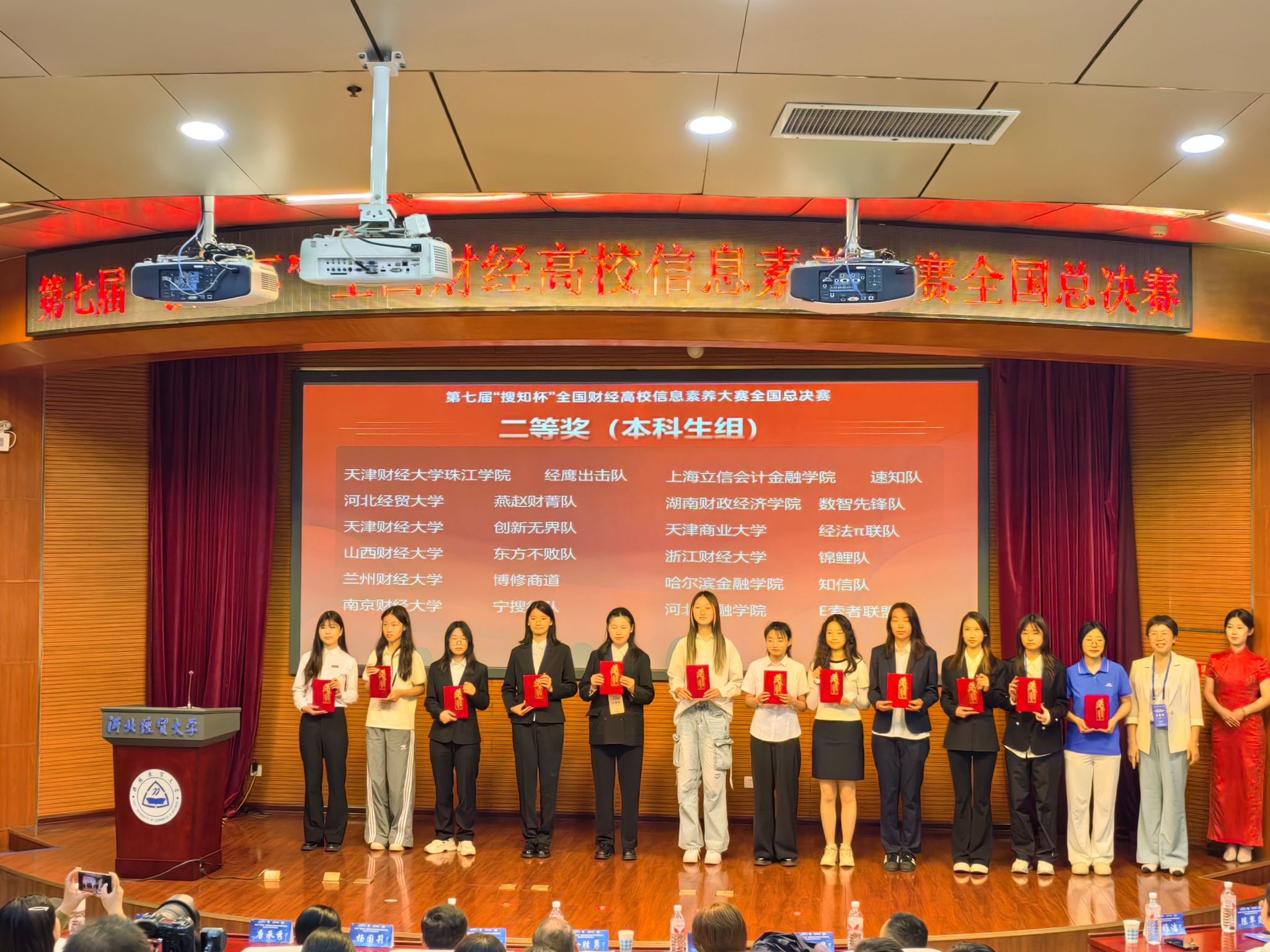 5月17日至18日,第七届“搜知杯”全国财经高校信息素养大赛全国总决赛在河北经贸大学举行,来自全国39所财经高校的61支参赛队伍在为期两天的赛事中展开比拼。经过激烈角逐,我校会计学院韩佩瑾、张子涵和国际经贸学院吴晓可组成的本科生代表队获全国二等奖,营销与物流管理学院陈坤钰、法学院陈燕、金融学院陈冠宇组成的研究生代表队获全国三等奖,图书馆获组织奖,指导教师吴虚、张思瑶分别获最佳指导教师奖和优秀指导教师奖,两位指导教师的微课参赛作品“AI智能对信息阅读和筛选的提升”获信息素养微课大赛二等奖。