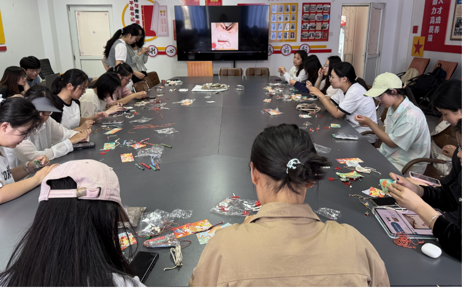 会计学院开展五彩绳编织与香囊制作活动。同学们相互交流、学习编织技巧,一根根五彩绳寄托着大家“祈福纳吉”的美好心愿;香囊制作环节,同学们小心翼翼地将艾草装入布袋,穿针引线,认真缝合,在欢声笑语中,一个个造型独特、香气四溢的香囊陆续完成。