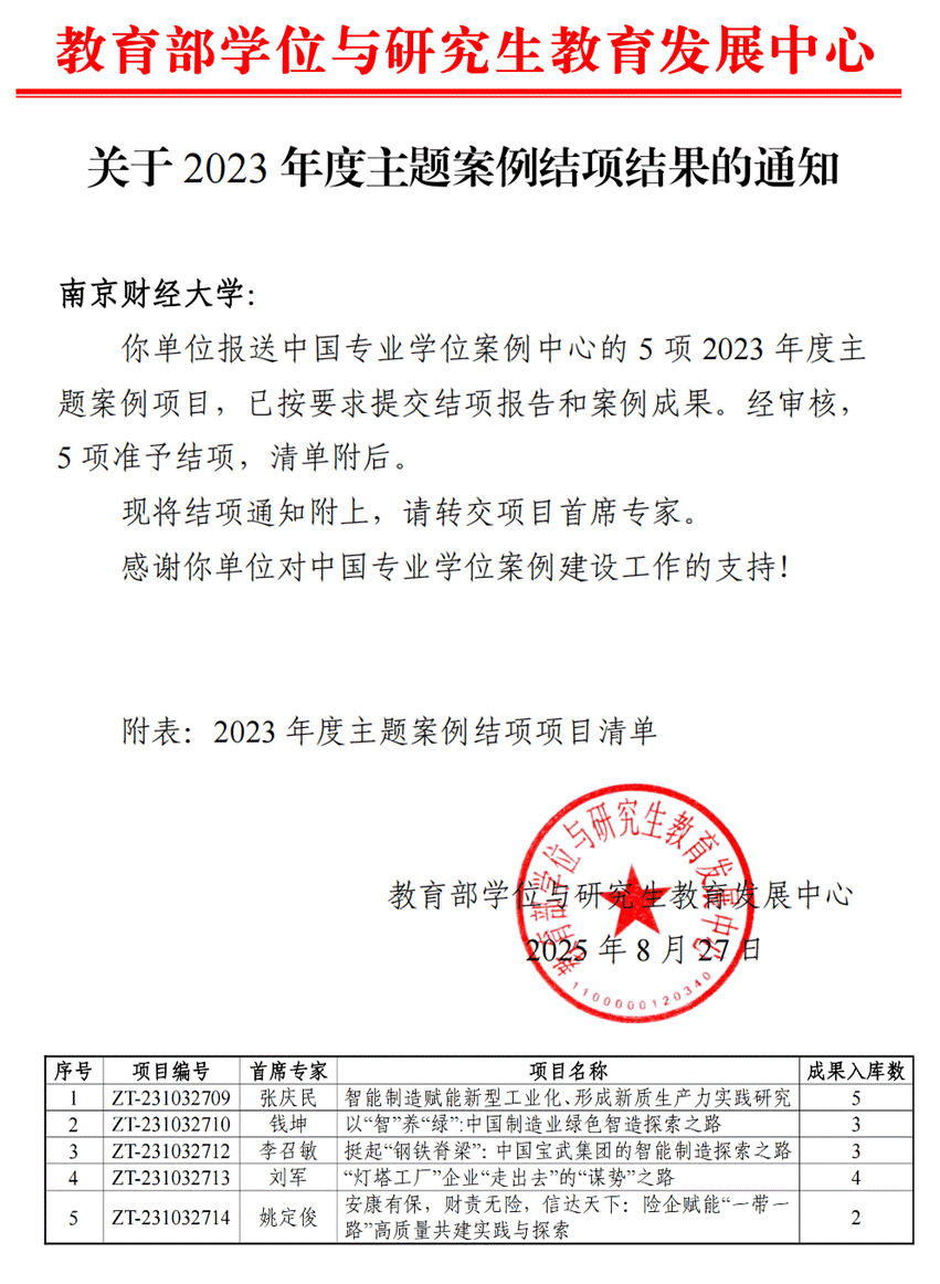 8月27日,教育部学位与研究生教育发展中心公布了关于2023年度主题案例结项结果的通知,我校获批立项的5项主题案例全部成功通过结项验收。依托上述项目开发撰写的17篇教学案例将按程序收录至中国专业学位案例中心案例库,收录数量创历史新高。相关案例成果将在中国专业学位案例教学服务平台上面向全国高校进行展示和推广,为各高校及教师开展案例开发、案例研究及案例教学提供参考与借鉴。