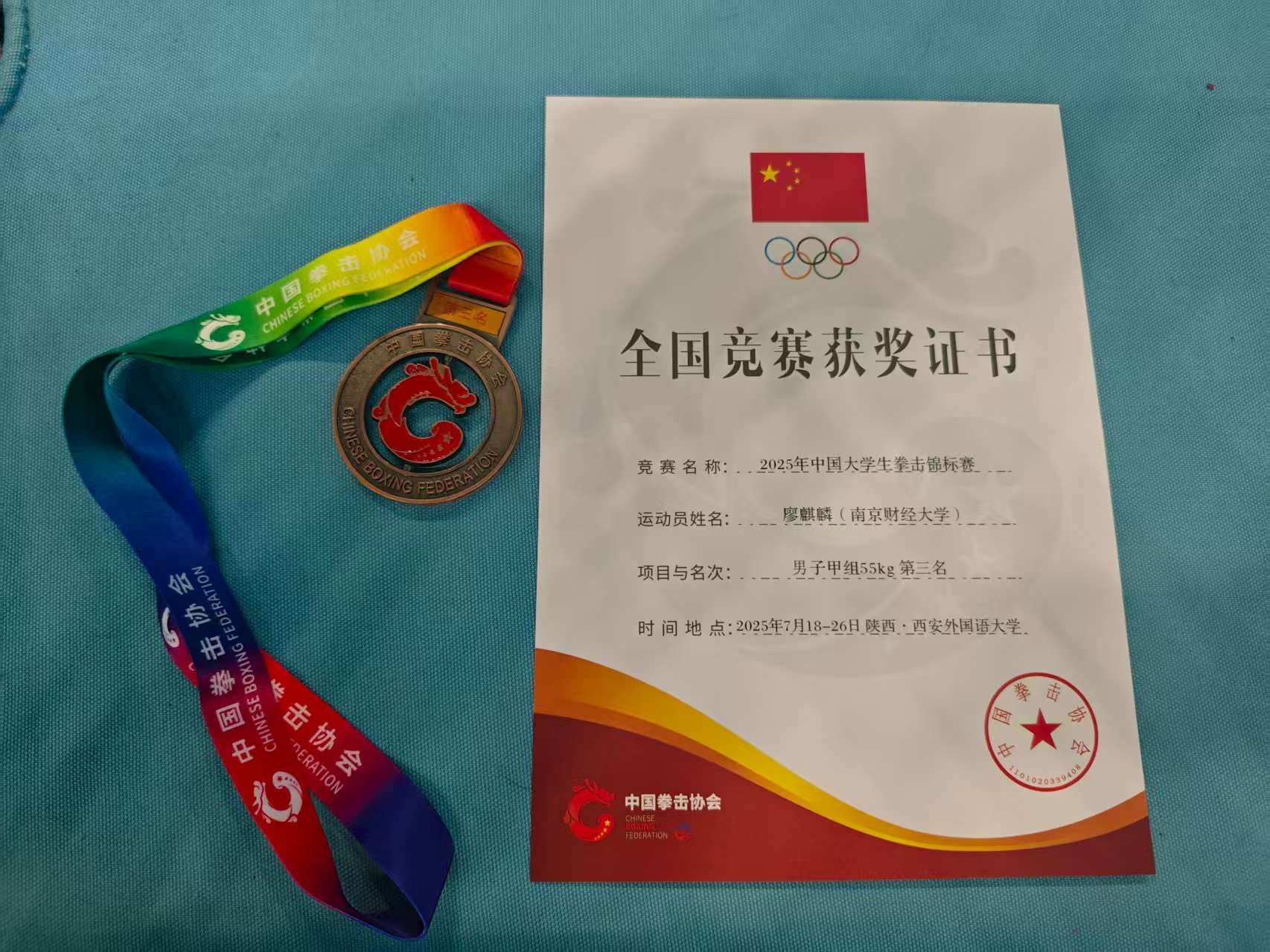 我校学子廖麒麟勇获2025年中国大学生拳击锦标赛季军
