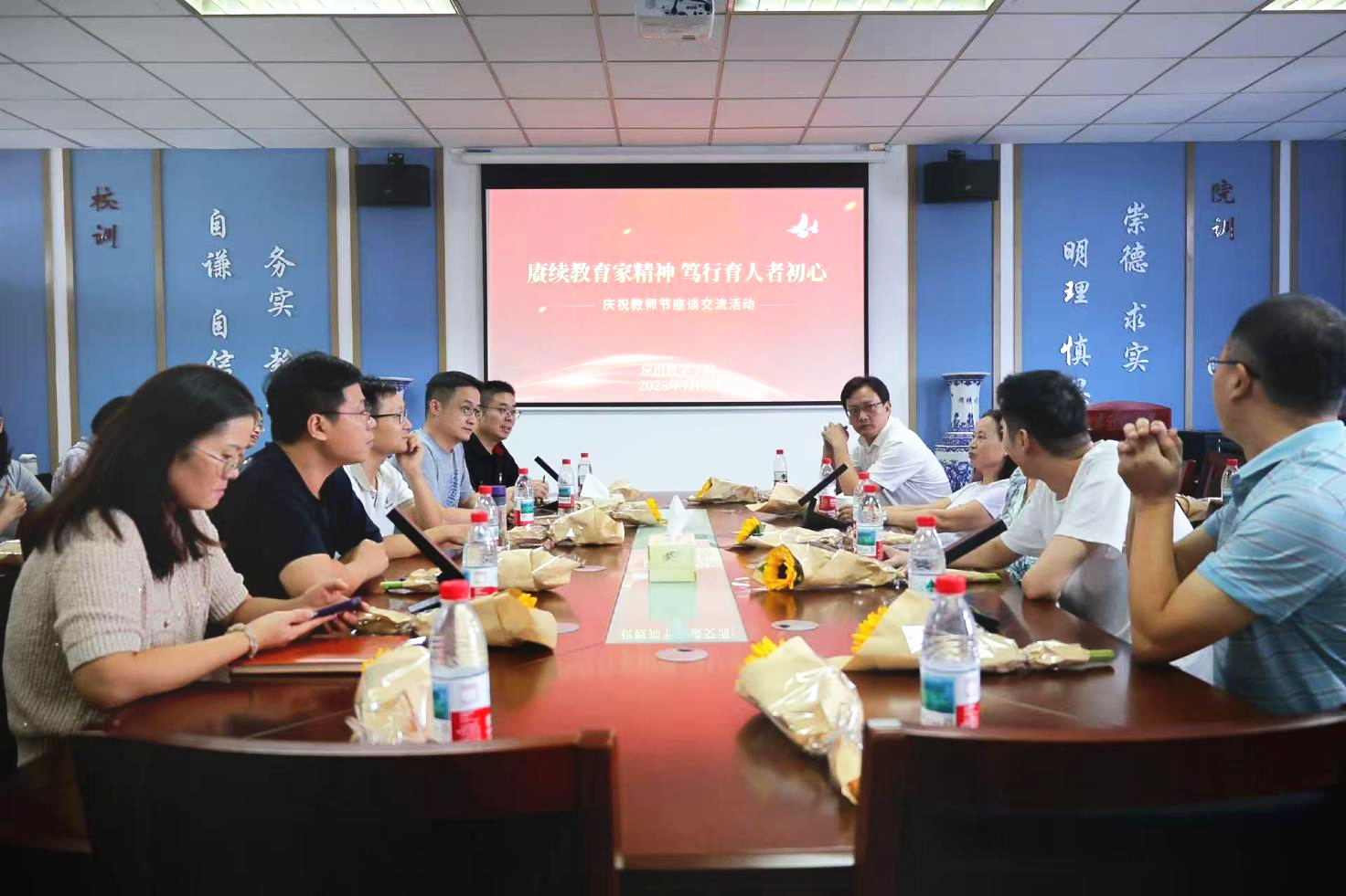 应用数学学院开展“赓续教育家精神,笃行育人者初心”教师节座谈交流活动。学院党政领导与师生代表齐聚一堂,共话育人初心。教师代表谭玉顺教授、党外教师代表孙敏和即将光荣退休的陈美霞老师结合自身经历分享心得,真挚发言引发全场共鸣,师生们踊跃交流、畅所欲言。同学们手捧精心准备的向日葵,向老师们献上最诚挚的节日祝福。