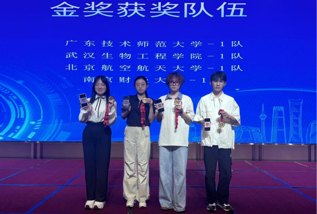 我校参赛队伍在闭幕式上领奖(从左至右:朱明慈、吴亦乔、杨陆、王沁园)