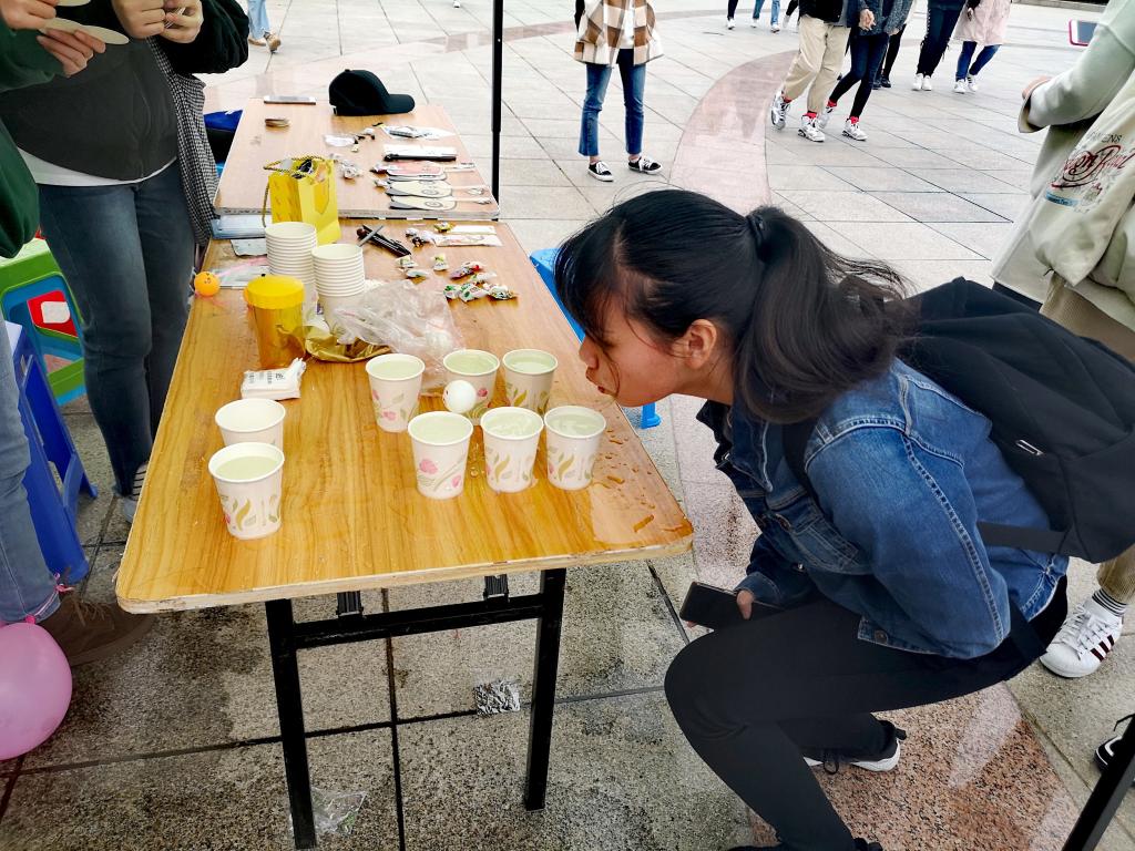 本次活动设有5个关卡,同学们通过收集分别印有“我爱320”字样的卡片来换取相应的奖品。“心理知识竞答”区前,同学们神情专注。竞答之余也帮助同学们了解了一些心理知识;“沙盘游戏”的帐篷里,同学们对沙盘里的布置谨慎地进行选择,心理健康教育与咨询中心的老师则在一旁循循善诱,进行心理剖析。老师们通过同学的摆放了解同学们的内心,并为同学们开解烦恼,提出建议。参与活动的宋同学说:“远离家乡,独自来南京求学,我以为我是毫无牵挂的。但这个心理测试告诉我,我其实对家是有牵绊的,以后还是要多与家里联系。这个活动给了我一个认识自我的机会,挺有意义的。”隔壁帐篷里,只见同学们一个个鼓足了腮帮子,吹得乒乓球在几个装满水的杯子中旋转跳跃;踢毽子和组队踩气球处最为热闹,不听话的毽子总是无法顺利被踢入桶内,同学们一番抓耳挠腮后,纷纷找到了技巧;踩气球的二人则是对对方的气球虎视眈眈,各种出其不意的攻击让各组比赛十分精彩;熊本熊爱的抱抱向同学们传递了爱与温暖,“心指传情”用手语悄无声息地表达着爱意;一旁相对安静的“心愿展板”区,大家认真地写下自己美好的愿望,将温暖传递下去……
