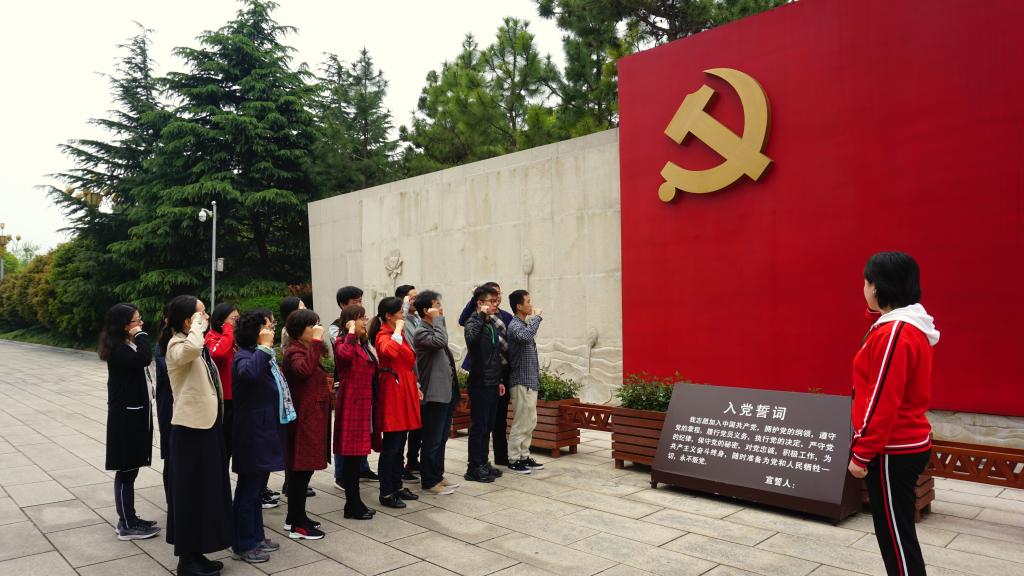 教工党员参观了中共“一大”召开的游船。在著名的“红船”前,同志们展开党旗,合影留念。一艘小小游船,开启了那个时代先进分子筚路蓝缕的伟大理想,回溯这段历史岁月,令在场同志们充分体会到革命先辈立党为公的初心。随后,教工党员们进入南湖革命纪念馆参观。展馆的布置和参观路线,以时间线索贯穿了中国在共产党的领导下,从黑暗苦难中逐渐走出,通过艰苦奋斗,直至迎来独立解放、繁荣富强。一幅幅历史照片和一件件文物材料,使人仿佛重新置身那段激情燃烧的岁月。生动的历史陈列让大家深深体会到,只有中国共产党才能救中国。参观结束后,在南湖革命纪念馆前的宣誓墙前,全体教工党员以最为庄严神圣的态度,重温入党誓词。在学院党总支书记周亚芳同志带领下,全体教工党员再次学习了习近平总书记提出并阐释的“红船精神”:“开天辟地,敢为人先的首创精神;坚定理想,百折不挠的奋斗精神;立党为公,执政为民的奉献精神。”