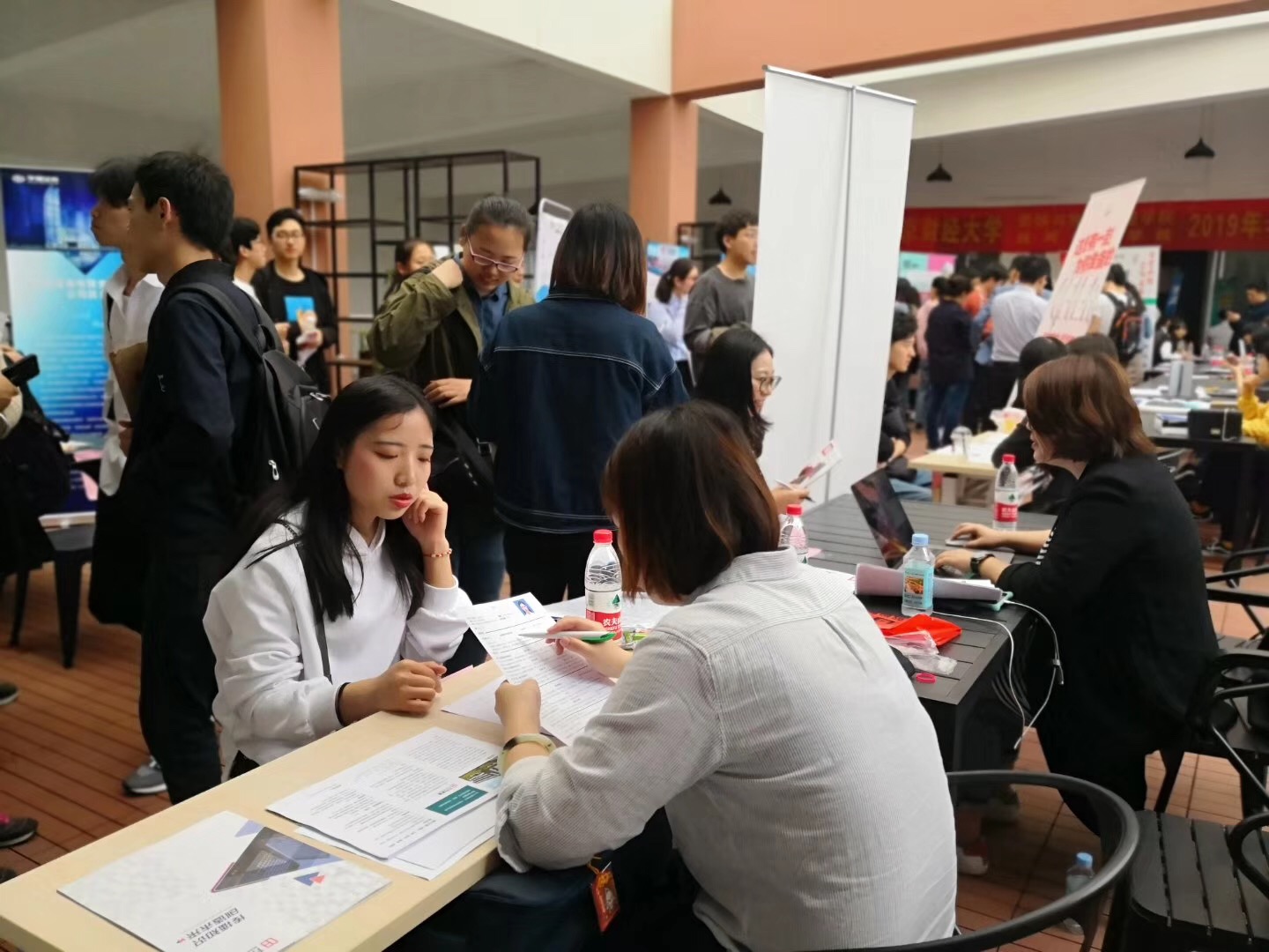 4月23日下午,营销与物流管理学院、应用数学学院2019年春季招聘会在仙林校区德业楼6楼举办。营销与物流管理学院与应用数学学院党政领导来到招聘会现场与用人单位沟通交流,了解单位需求,探讨校企合作模式。