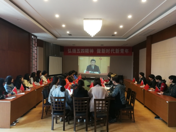 4月30日上午,纪念五四运动100周年大会在人民大会堂举行。中共中央总书记、国家主席、中央军委主席习近平出席大会并发表重要讲话。校团委组织我校团员青年以各种形式收看纪念五四运动100周年大会。