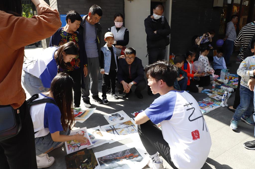 活动现场,志愿者们向来往市民及游客介绍了参与义卖的书画作品,并讲述作品中蕴含的志愿者与南京市儿童福利院高淳分院儿童之间的不解之缘、感人故事,吸引了众多游客和市民的驻足与购买。艺术设计学院志愿者刘屹恒同学说:“习近平总书记在纪念五四运动一百周年大会上提到新时代中国青年要担当时代责任,我们用所学去关心和帮助包括福利院儿童在内的社会弱势群体是青年担当社会责任的一种体现,这将激励我们勇立时代潮头、争做时代先锋。”