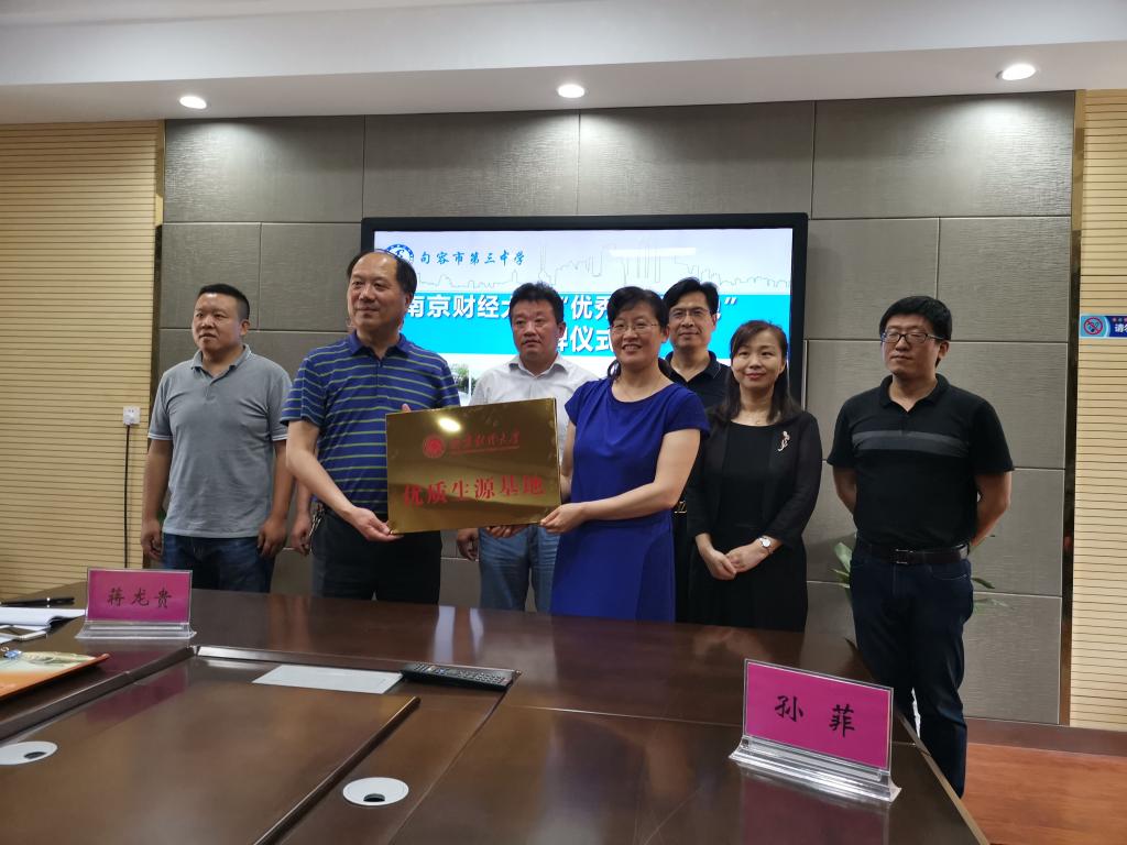 孙菲副处长与蒋龙贵校长代表两校签订了《南京财经大学优质生源基地建设协议书》,周亚芳书记代表学校授予句容市第三中学“南京财经大学优质生源基地”铜牌。