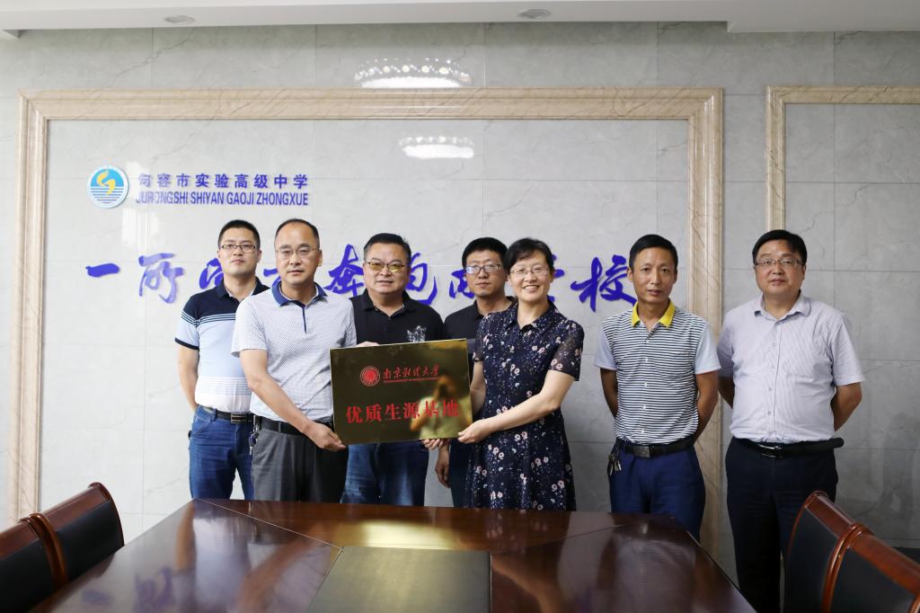 6月17日下午,我校在句容市实验高级中学建立优质生源基地,并举行签约授牌仪式。句容市实验高级中学校长刘瑞宏、副校长薛国强,我校新闻学院党总支书记周亚芳、副书记李博伟等参加仪式。