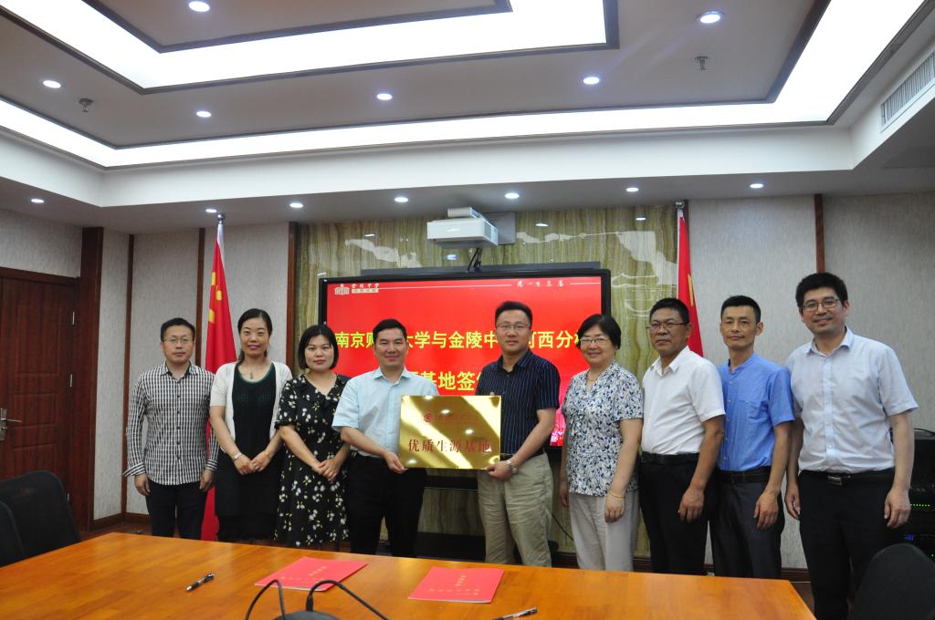 杨华副书记与朱焱校长代表两校签订了《南京财经大学优质生源基地建设协议书》,杨华副书记代表学校授予金陵中学河西分校“南京财经大学优质生源基地”铜牌。