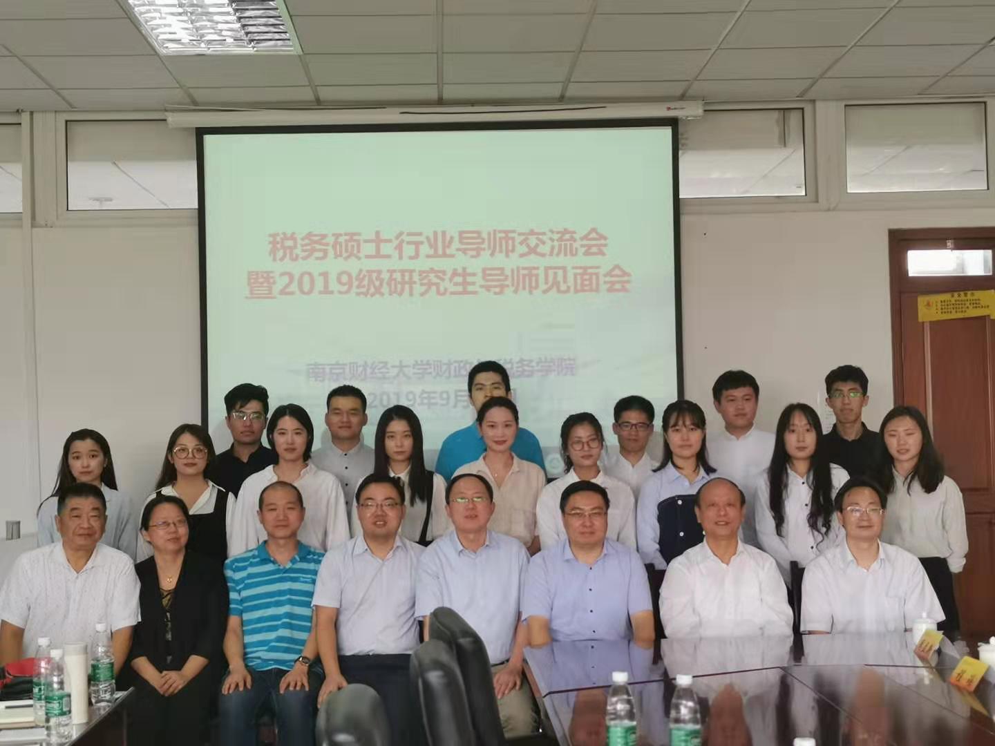 校内导师、校外导师并行,理论教学与实践相结合的“双导师”制度是专业硕士的有效培养方式。为进一步加深校内、校外导师的沟通,加强学生与校外导师的互动交流,9月21日下午,财税学院在我校仙林校区德经楼408会议室召开了税务硕士行业导师交流会暨2019级研究生导师见面会。江苏省人大财经委江建平、江苏文投集团王国丰、江苏宿迁税务局吴健、中国邮储银行南京庐山路管辖支行于文国等行业导师以及学院部分党政领导和教师、全体19级税务专业硕士研究生参加了见面会。会议由财税学院副院长管永昊主持。