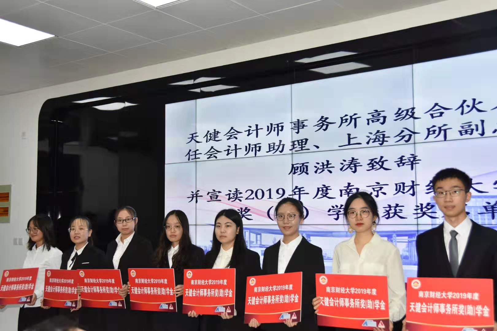9月26日晚,2019年度“天健会计师事务所奖(助)学金”颁奖仪式在仙林校区德济楼209举行。我校副校长时现、天健会计师事务所高级合伙人顾洪涛、会计学院党委书记姚学峰出席颁奖仪式。仪式由会计学院党委副书记刘颖主持。