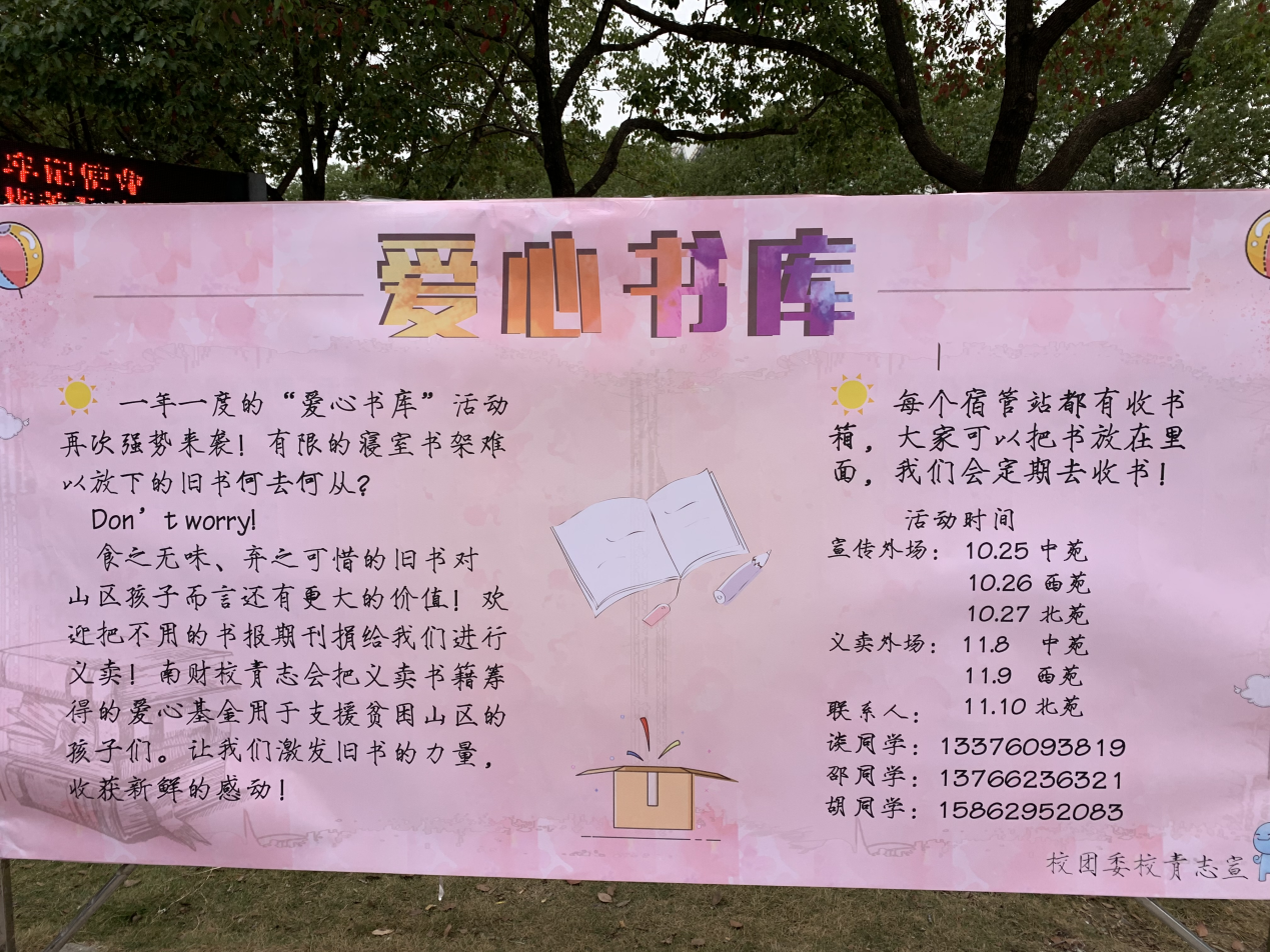 此次活动以“让书籍重生,让爱心流转”为主题,在解决了一部分同学闲置书籍的烦恼的同时,也培养了同学们的爱心,帮助了贫困山区的孩子们,让他们更好地学习成长。