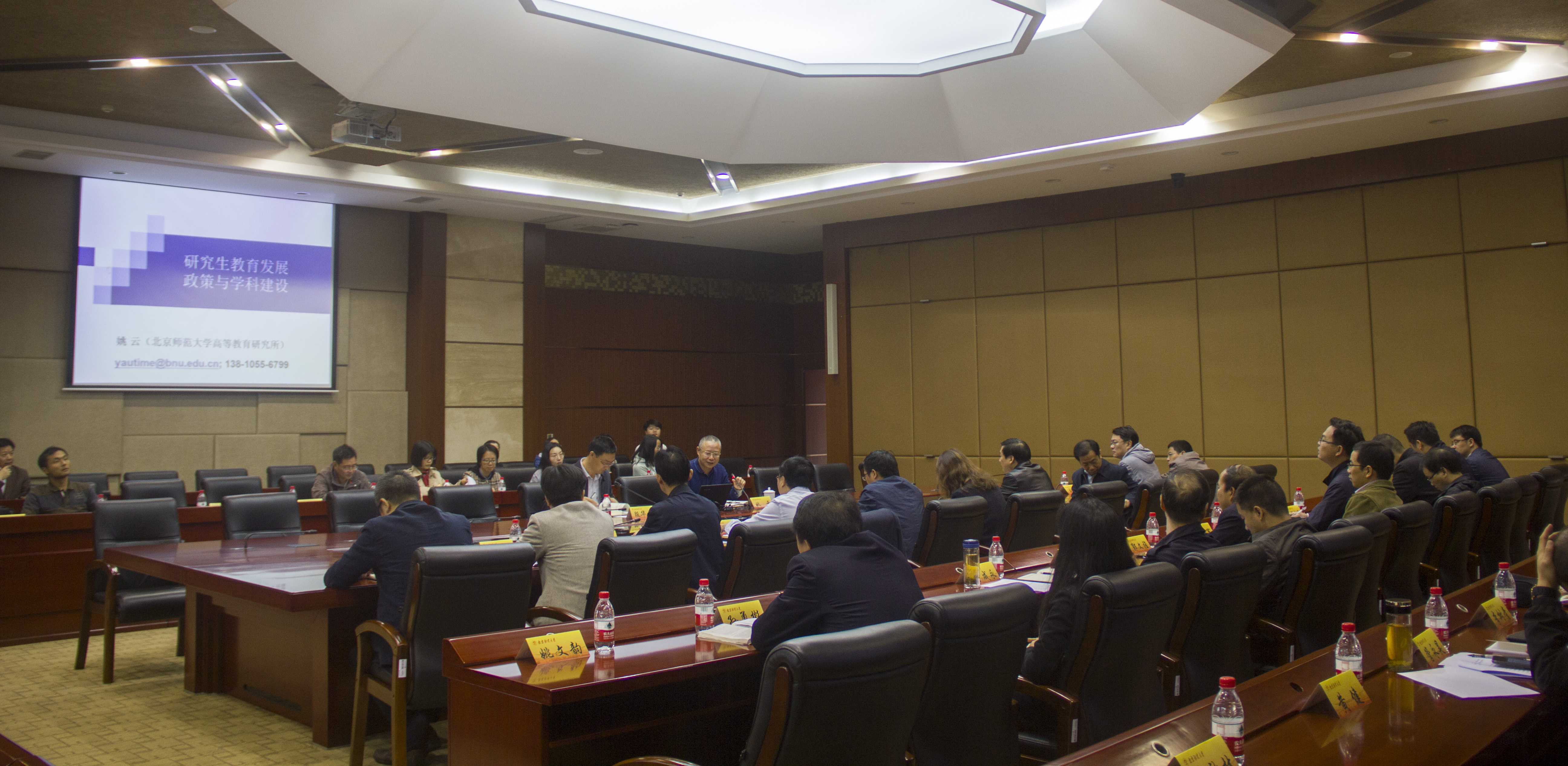 10月29日上午,北京师范大学博士后发展研究与评估中心主任、教育学部高等教育研究所教授、博士生导师姚云在仙林校区工科楼二楼会议室作了题为“研究生教育发展政策与学科建设”的主题报告。报告会前,校长程永波在工科楼贵宾室会见了姚云教授。报告会由研究生院院长殷华方主持,我校相关学院院长、分管学科建设与研究生教育副院长、学科带头人聆听了报告。