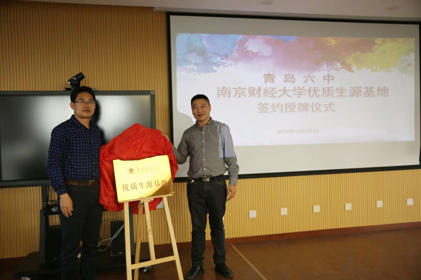 随后,郭承波书记分别与王先军校长、张瑞海校长签署《南京财经大学优质生源基地协议》,并代表学校授予青岛一中、青岛六中“南京财经大学优质生源基地”铜牌。