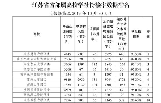 江苏省省部署高校学社衔接率数据排名