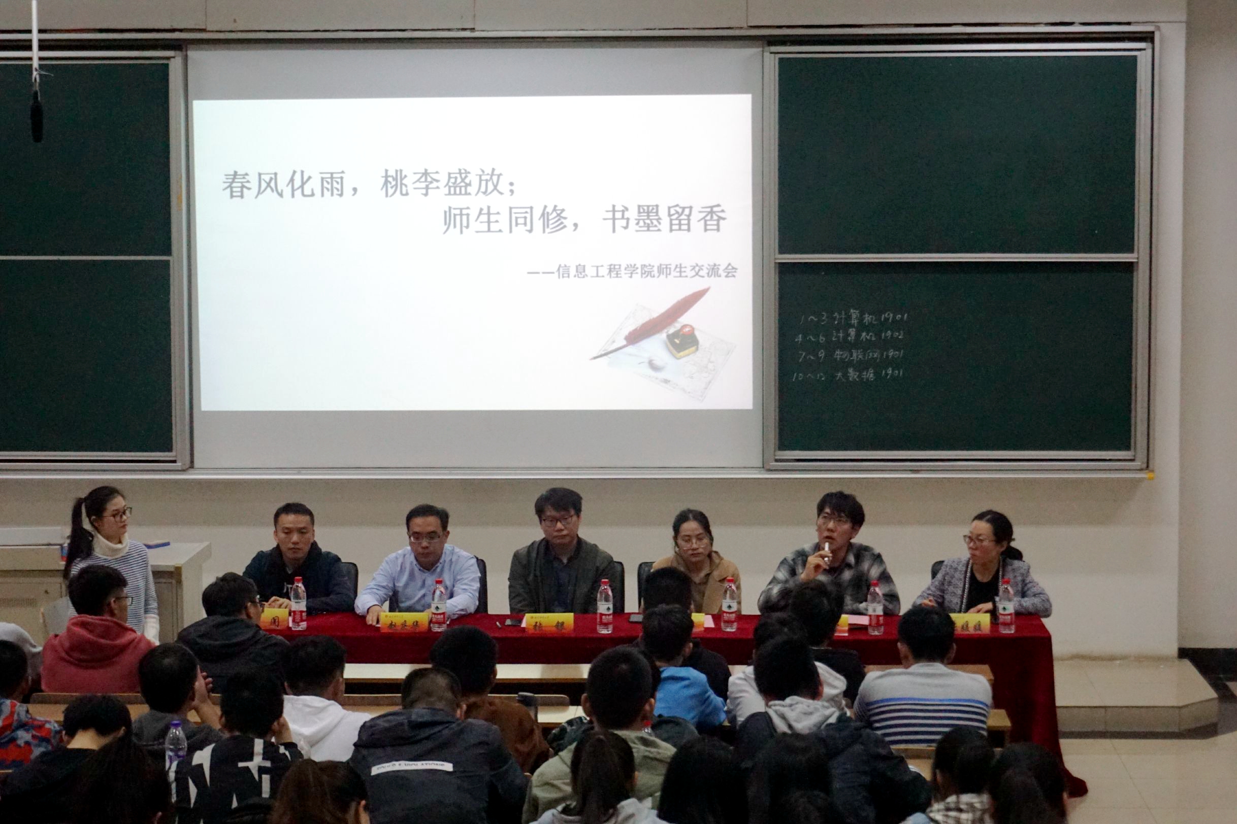 11月11日晚,信息工程学院在我校仙林校区博观楼JB302开展了“春风化雨,桃李盛放;师生同修,书墨留香”师生交流会。信息工程学院学工系统老师以及2019级新生班主任参加活动,与2019级新生们现场交流。