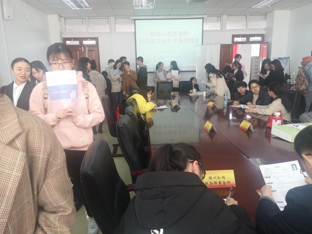 11月19日下午,财政与税务学院2020届毕业生秋季专场招聘会在仙林校区德经楼408室举行。江苏省注册税务师协会副会长徐火财、办公室主任徐华敏出席招聘会,财税学院2020届毕业生参加了招聘活动。