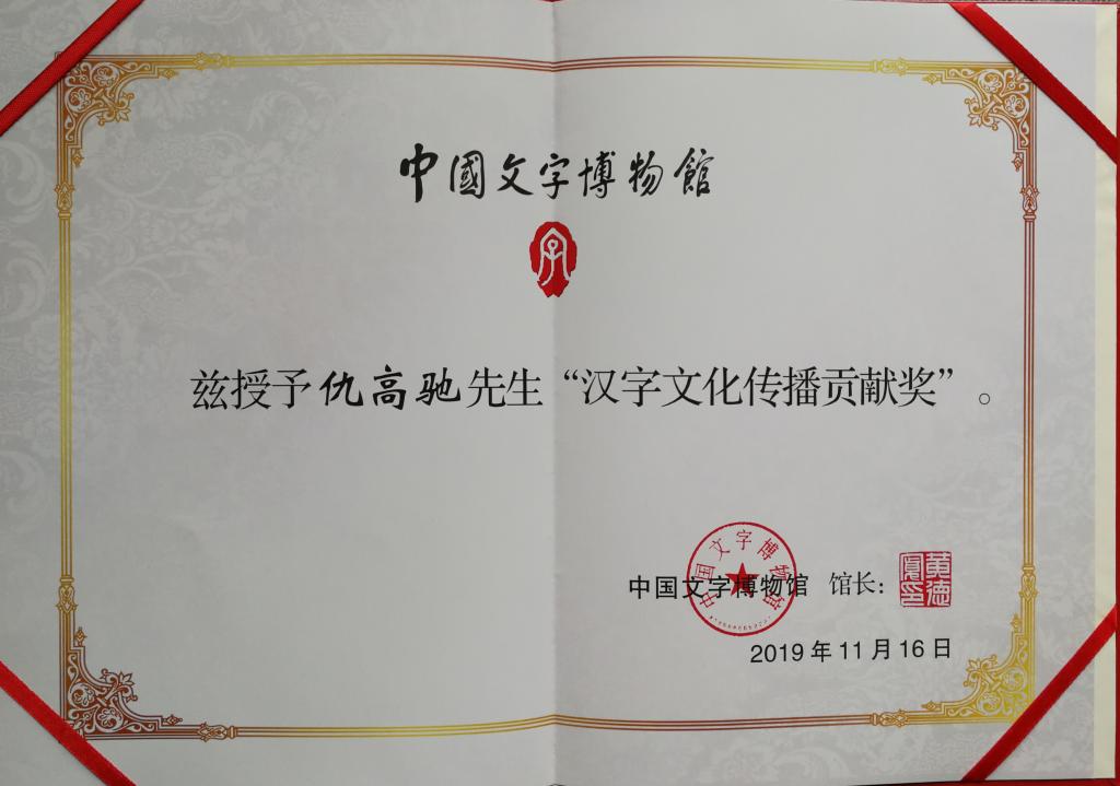 我校教授仇高驰获“汉字文化传播贡献奖”