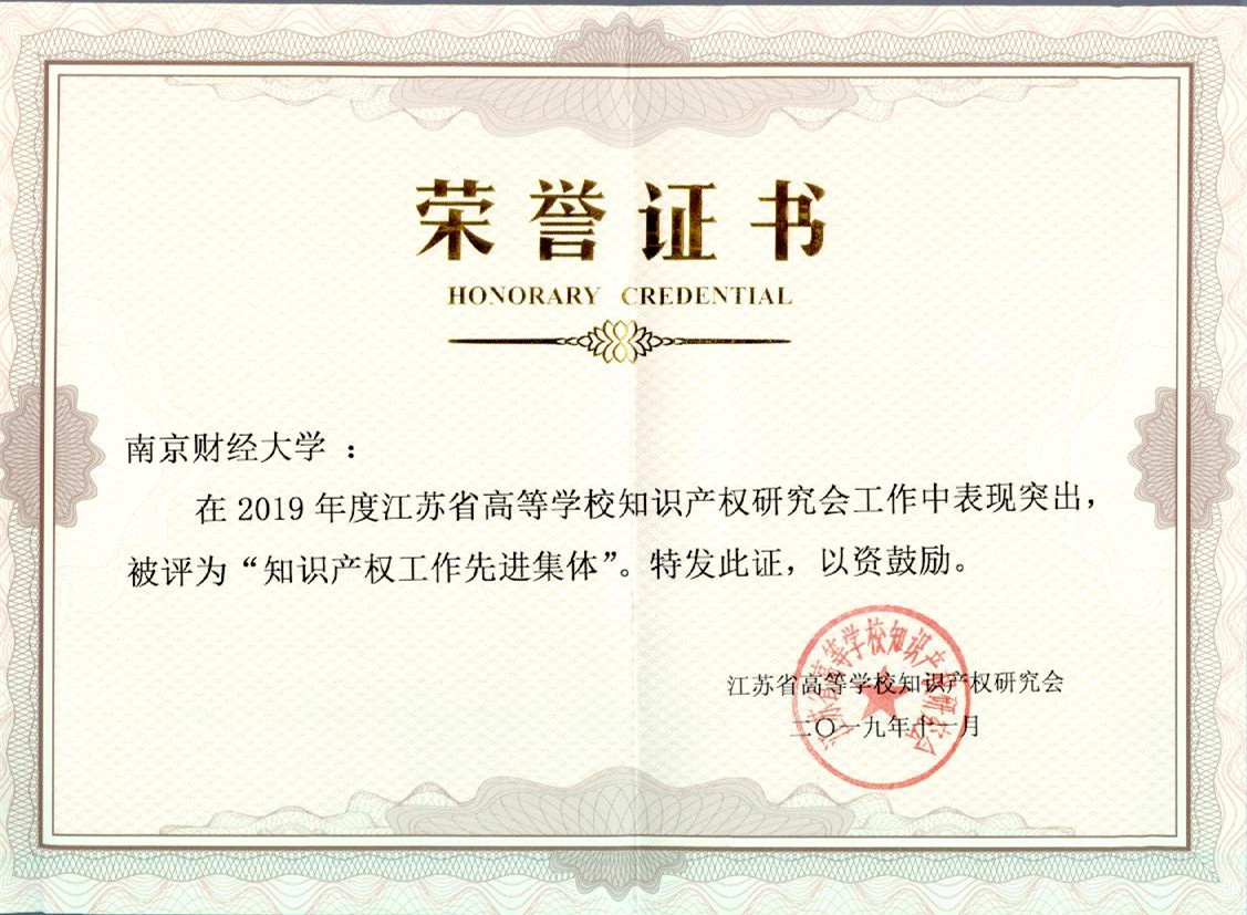 11月29日上午,江苏省高校知识产权研究会2019年年会在河海大学常州校区召开。会议表彰了2019年全省高校知识产权工作先进集体和先进个人,我校被评为2019年度江苏省高等学校知识产权研究会“知识产权工作先进集体”。