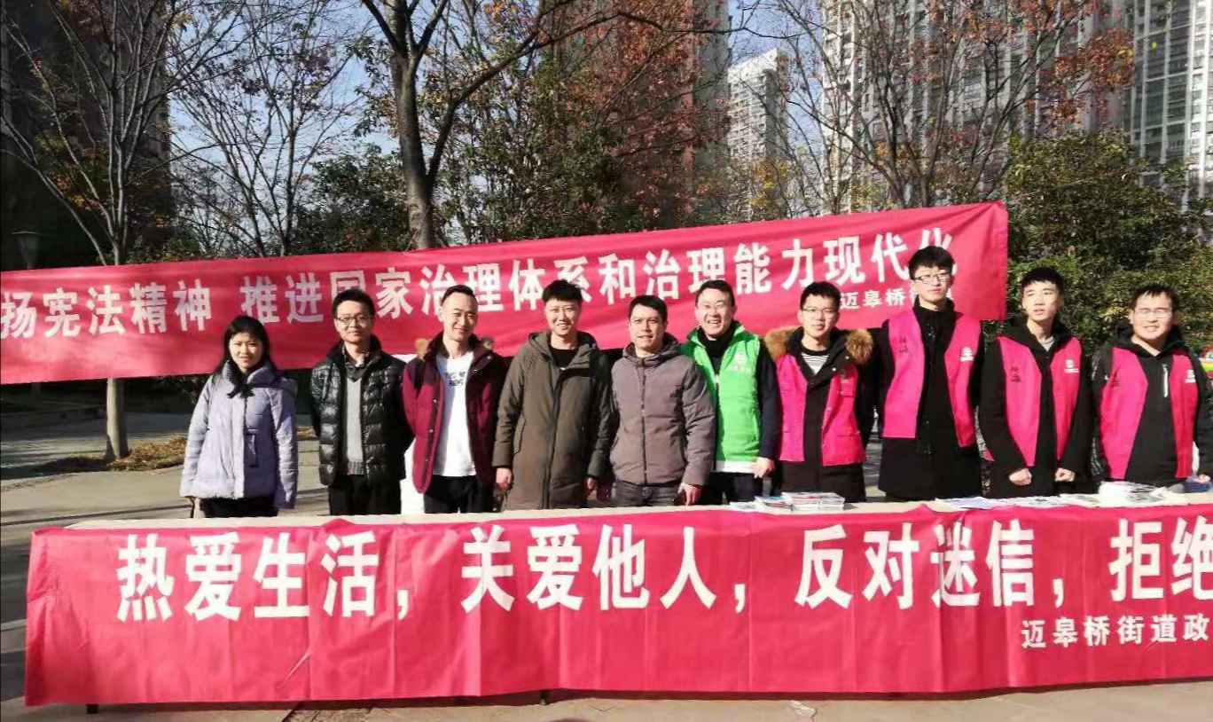 法学院法律援助中心联合迈皋桥司法局在迈皋桥街道丁家庄苏果超市广场开展了主题为“增强法治观念,弘扬宪法精神”的国家宪法日普法活动。活动内容包括发放宣传手册、知识普及、法律咨询等。志愿者们为市民们介绍有关国家宪法日的背景与发展历程等内容。针对市民们提出的问题,志愿者们耐心解答并提供法律咨询。